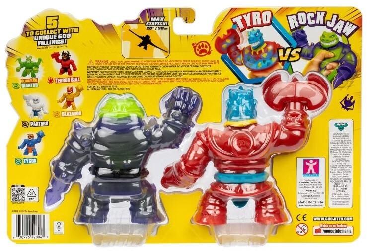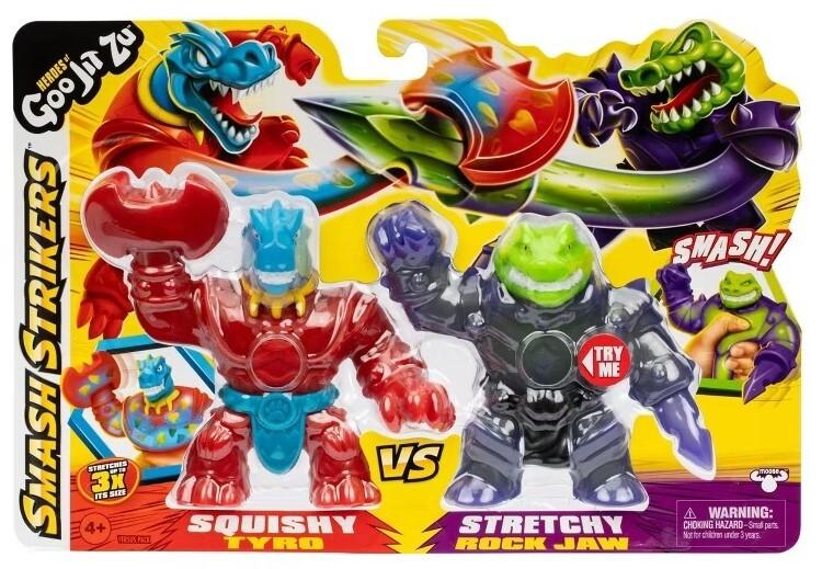 *Heroes Of Goo Jit Zu: Versus Smash Strikers – Tyro & Rock Jaw*Get ready for an epic, action-packed battle with the NEW Heroes of Goo Jit Zu Smash Strikers Versus Pack! Prepare for an all-out thrilling battle as Tyro duels with Rock Jaw! This season, the excitement reaches new heights with Tyro and Rock Jaw's game-changing upgrades: the ULTIMATE SMASHING WEAPON! Just when you thought stretching Tyro and Rock Jaw three times their size was epic, watch as these warriors channel all the goo inside them to release an epic SMASH ATTACK! Will Tyro and his EPIC squishy powers be enough to overcome Rock Jaw and claim victory? Or will stretchy Rock Jaw smash Tyro back to the Stone Age?Stretch, squish, and SMASH with Tyro and Rock Jaw to see who will emerge victorious in this Smash Attack Versus Pack! Collect all 7 NEW Heroes of Goo Jit Zu Smash Strikers to experience the ultimate stretchy SMASHING action.*Features:** Introducing the NEW Heroes of Goo Jit Zu Smash Striker Versus Pack – Tyro Vs Rock Jaw* Squish Tyro and Rock Jaw to reveal their unique fillings!* Squish all the goo into Tyro and Rock Jaw's weapon to activate their ULTIMATE SMASH WEAPONS!* Stretch Tyro and Rock Jaw up to three times their size!* Collect all 7 NEW Heroes of Goo Jit Zu Smash Strikers, including Blazagon, Pantaro, Tygor, Tyro, Ultra-Rare Mantor, and the new villain, Terrorbull & Rockjaw!*Suitable for Ages 4+*