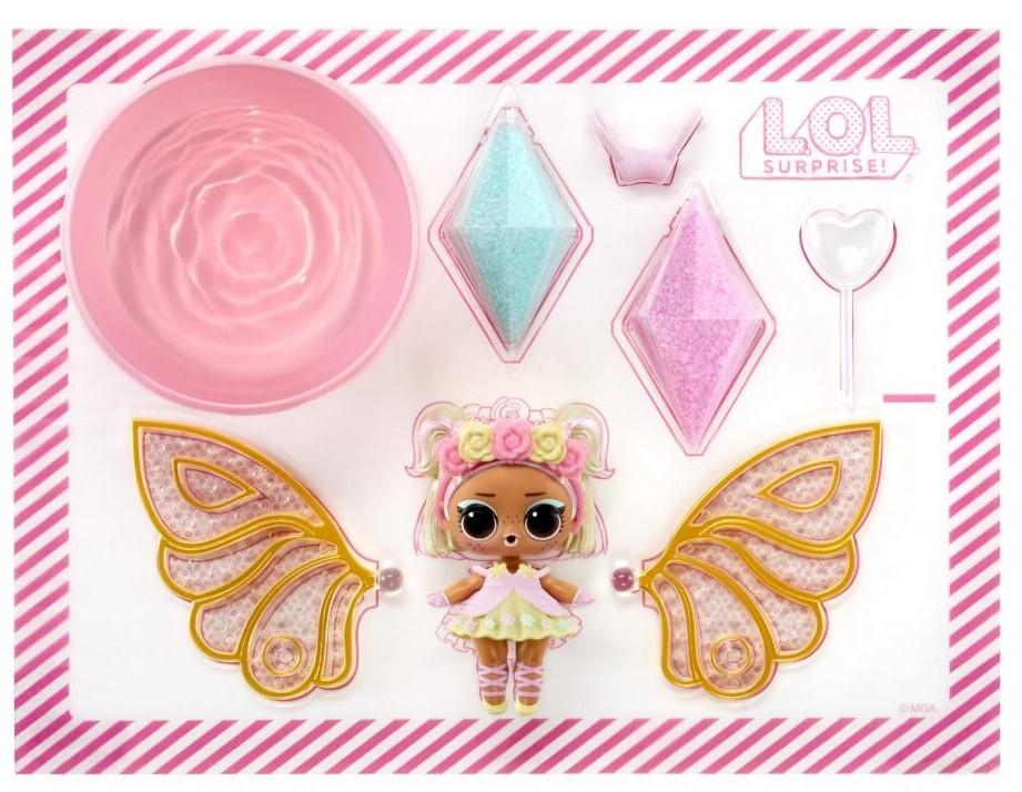 *LOL Surprise: Fairy Tots! (Blind Box)*The fairy series from the colorful and cute LOL Surprise! is here! With LOL Surprise! Fairy Make Fairy Wings, you can make your own doll wings!There are 8 types of dolls in total! You'll have to open the capsule to find out what you get! Place the plastic sand in the capsule on the wings and pour water on top for a surprise! The sand will harden and create beautiful, sparkling wings. It also comes with stylish accessories, so put them on your doll.*Features:** The photo is for illustration purposes only.* You cannot choose the type. The clothes and accessories included will vary depending on the doll.* Due to improvements, the actual product may differ slightly from the images. Please note in advance.*Suitable for Ages 3+*