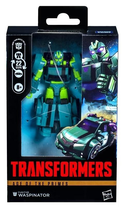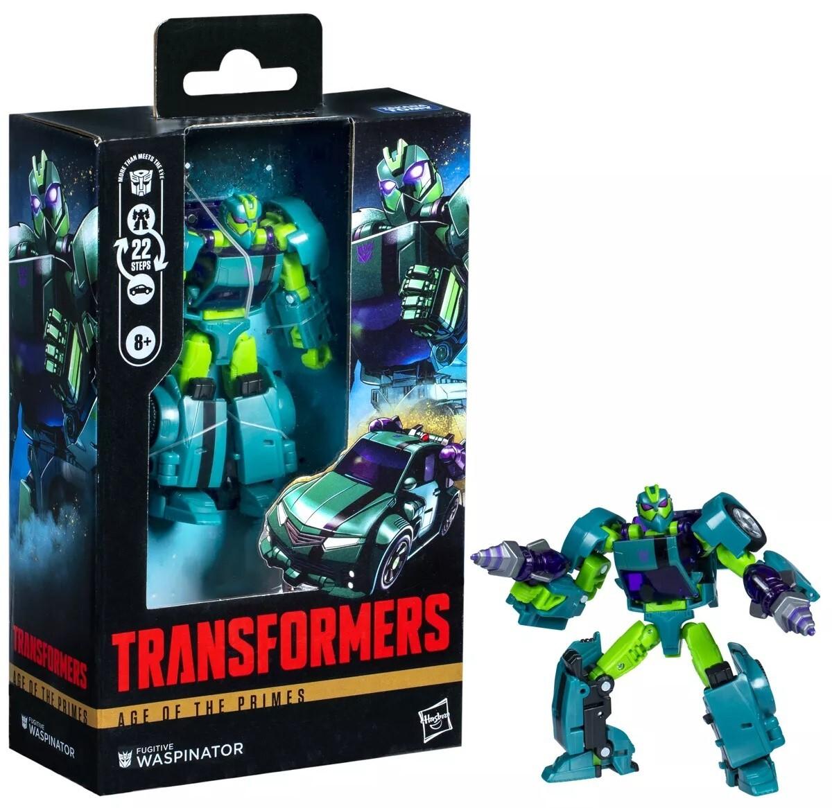 *Transformers Age of the Primes: Deluxe – Waspinator*Unite your favorite characters from across the world of Transformers robots into your collection with the Transformers Age of the Primes Deluxe Class Fugitive Waspinator action figure! This 5.5-inch Fugitive Waspinator action figure converts between robot and sports car modes in 22 steps. Includes blaster accessories that attach to the figure. The Fugitive Waspinator figure is inspired by the character from the Transformers universe and features articulated head, arms, and legs for awesome action poses.Transformers: Age of the Primes opens up the world of the Primes, the very first bots in Transformers mythology, a pantheon of Thirteen beings, each with a unique ability and personality. Every battle, every bot, and every power in the Transformers universe can be traced back to one of The Thirteen. Collect and combine different Transformers figures to create your ideal Age of the Primes lineup. TRANSFORMERS and HASBRO and all related trademarks and logos are trademarks of Hasbro, Inc.*Features:** This 5.5-inch (14 cm) Fugitive Waspinator action figure features deco and detail inspiration from the Transformers universe* Transformers action figure converts from robot toy to sports car toy in 22 steps* This Fugitive Waspinator Transformers figure comes with 2 blaster accessories that attach in both modes* Transformers action figures feature articulated heads, arms, and legs for action poses* This Fugitive Waspinator action figure toy makes a great collectible figure gift for any Transformers fan* Fugitive Waspinator is a descendent of The Thirteen Micronus Prime* The Thirteen Primes are the very first bots in Transformers mythology, a pantheon of beings each with a unique ability and personality. Every battle, bot, and power in the Transformers universe can be traced back to them*Suitable for Ages 8+*