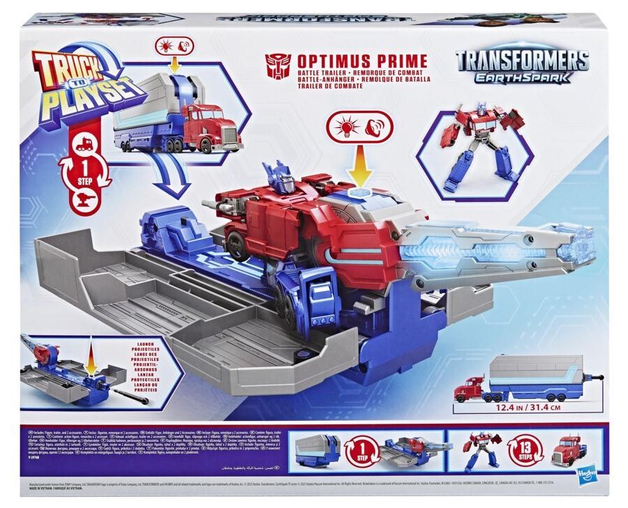 *Transformers Earthspark: Optimus Prime – Truck-to-Playset*Get ready to roll into battle with the Transformers Optimus Prime Battle Trailer playset! There are so many ways to play with this awesome Transformers toy. Put the 5-inch (12.5 cm) Optimus Prime figure into toy truck mode, then attach the playset in trailer mode and roll out! Then, convert the Optimus Prime action figure into robot mode and flip the blaster on the playset to see it open up into a battle station. The figure can sit in the battle station and man the light-up blaster or the projectile launcher.Kids can load a projectile into the launcher and launch it with the press of a button! With lights and unique sounds in each mode, kids can feel like part of the exciting action of the Transformers: EarthSpark show. Electronic toys like the Optimus Prime Battle Trailer make great gifts for boys and girls 6 and up who love Transformers figures and toy cars.*Features:** A converting playset that changes from epic battle station with projectile launcher into an attachable trailer for the Optimus Prime figure!* When closed, the playset is an attachable trailer. Flip the blaster up and it opens into an awesome battle station! Then change back to trailer in 2 simple steps* Press the button on the playset to activate lights and different sound effects in each mode* Load one of the 2 included projectile accessories into the launcher, then press the button on the turret to launch* 5-inch (12.5 cm) Transformers action figure changes from robot toy to truck toy in 13 steps. In robot mode, figure can sit on the battle station. In truck mode, kids can attach the trailer and roll out!* Inspired by the Transformers: EarthSpark animated series, this Optimus Prime toy lets kids imagine their own epic adventures* This interactive toy vehicle playset makes a fun gift for boys and girls who love toy trucks and cars, Transformers action figures, and robot toys*Suitable for Ages 6+*