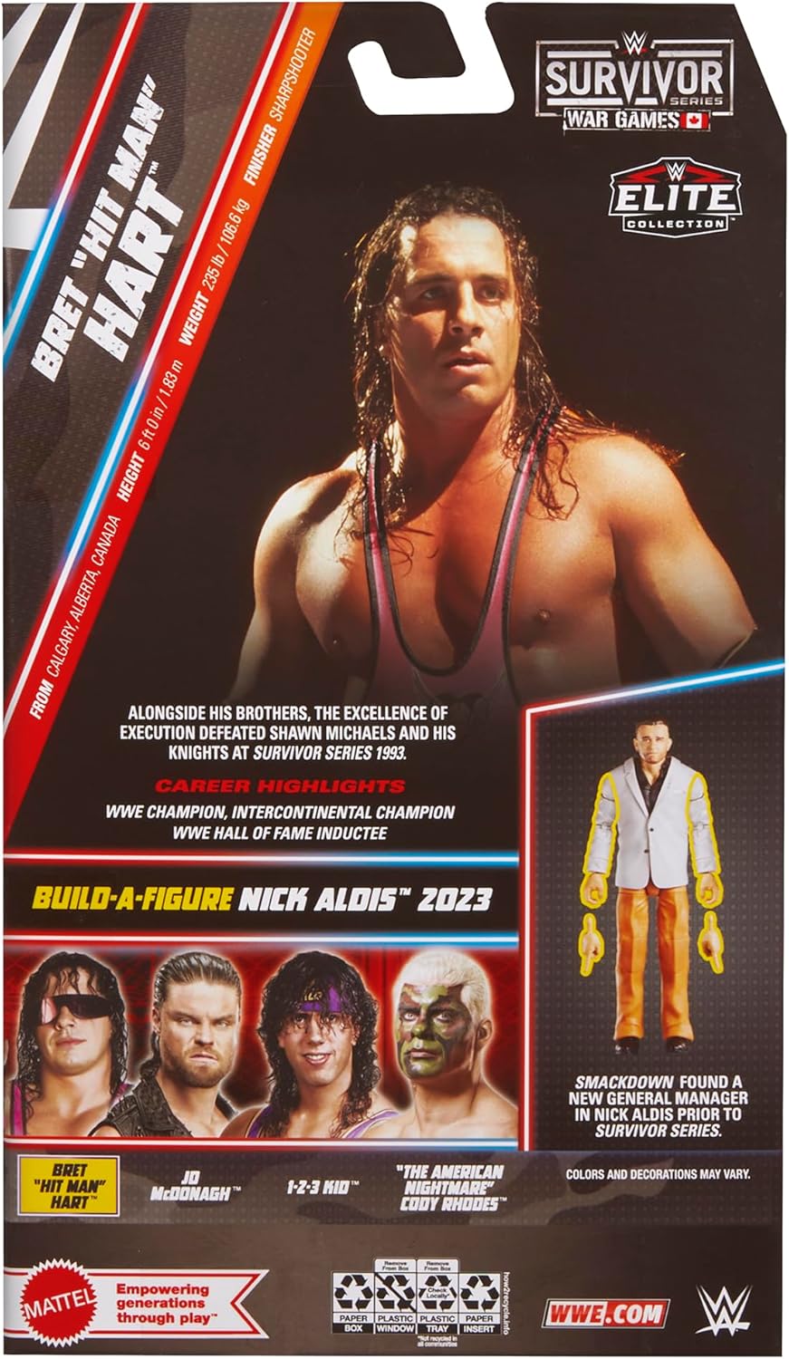 WWE Elite Collection Premium Live Event action figures celebrate WWE Superstars from their biggest moments! Play out WrestleMania, Royal Rumble, SummerSlam, and Survivor Series moments from iconic WWE Superstars.Each figure comes with iconic accessories and pieces to build a figure! Make your collection elite! Each sold separately, subject to availability. Colours and decorations may vary.*Features:** WWE Elite Figure recreates moments from Premium Live Events* Highly detailed TrueFX technology for life-like faces* Create signature poses and moves with deluxe articulation* Includes interchangeable hands and accessories* Complete the set to build another WWE Elite figure*Suitable for Ages 8+*