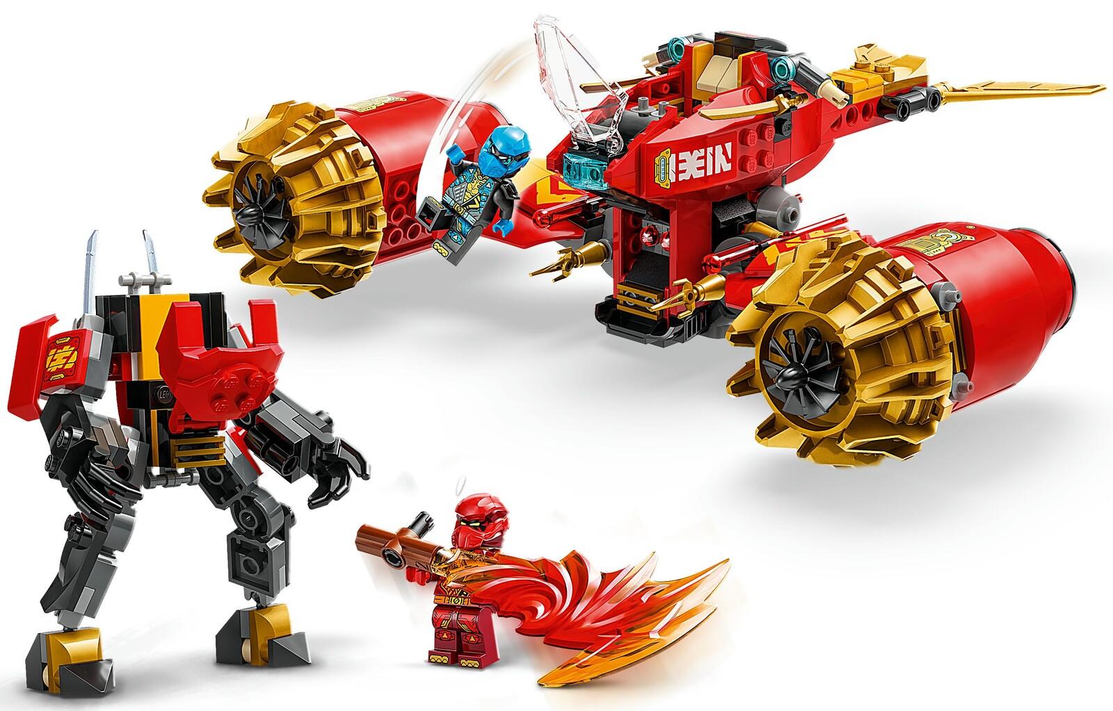 *LEGO NINJAGO combo ninja toy playset with 3 minifigures*Kai’s Mech Storm Rider (71830) combo ninja toy lets boys and girls aged 7 and over recreate exhilarating scenes from season 3 of the NINJAGO Dragons Rising TV show. Kids can play with the large action toy before they separate it into 2 smaller vehicles: Kai’s mech with posable head, arms and legs, a cockpit and a large storm blade accessory, and Nya’s flying motorbike toy with a cockpit, movable wings and 2 spring-loaded shooters.This ninja vehicle playset comes with 3 NINJAGO minifigures: Kai armed with 2 crystal katana sword accessories, Nya armed with 2 golden katana sword accessories and a villainous Dragonian Warrior with its own sword accessory so kids can role-play epic battles.The LEGO NINJAGO range of sets and buildable ninja toys for kids includes dragons, vehicles and temples so fans can role-play adventures with their heroes. Each ninja playset can be created with the LEGO Builder app, which guides you and your child on an easy and intuitive building adventure.*Features:*\* Combo ninja toy to recreate scenes from season 3 of NINJAGO Dragons Rising\* Large NINJAGO vehicle can be separated into a mech and a flying motorcycle\* Both vehicles are packed with features including cockpits and posable parts\* Includes 3 minifigures: Kai, Nya and a Dragonian Warrior for epic role play\* Birthday gift for kids aged 7 and over with a passion for ninja adventures\* Check out other action toy sets (sold separately) in the LEGO NINJAGO range\* LEGO NINJAGO sets let kids escape into a fantasy world\* 333-piece playset with a mech toy figure standing over 14 cm (5.5 in.) tall*Specifics:**Item*: 71830*Pieces*: 333*Ages*: 7+