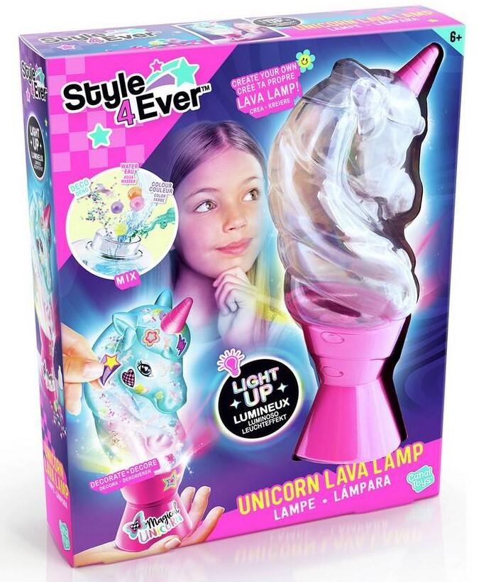 *Style4Ever: Unicorn Big Lava Lamp*Create and decorate your own battery powered Lava Unicorn Lamp! Add beads, colour, decorations then add water to create your own personal lava lamp! You can also decorate and personalise your Unicorn Lamp with the stickers provided. Once you have added all your style components, just turn to activate and watch the water swirl and the colour changing lights create amazing effects!*Features:** Includes 1 Unicorn Lava lamp 1 Bag of water beads 1 Bag of decorations 1 Bottle of colorant 3 Decoration sheets 1 Sticker sheet 1 Instruction sheet.* Size H31, W25, D8.6cm.* Creative Fun: Decorate, add water & turn to activate the battery powered Lava Lamp! Kit comes with beads, decorations, glitter, confetti, dioramas & colourant for you to add in step-by-step!* Cool Effects: Colour changing lights & fun water swirl function.* Personalise: Add your own style to the Lava Lamp with the stickers provided!*Suitable for Ages 6+*_Required: 3× AAA Batteries (not included)_