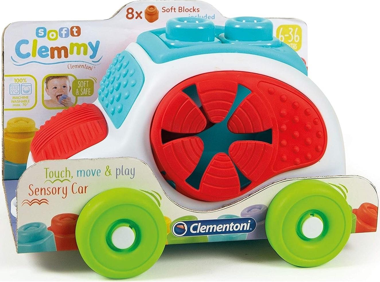 *Baby Clemmy: 2023 Vehicle*An innovative car with soft inserts, such as the Clemmy blocks, for a stimulating experience that mingles play and sensory discovery. The soft inserts can be explored and touched to discover the various relief patterns and shapes. Stimulates touch and manual abilities.The roof of the car can be used as a base for stacking the Clemmy blocks, it opens and becomes a practical compartment for storing all the blocks. The soft side windows allow for playing and inserting Clemmy blocks into the car and taking them out.*Features:** Stimulating experience that mingles play and sensory discovery* Multiple surfaces with raised parts and different textures encourage kids to explore and develop their sense of touch.* The attractive setting and cute characters make for spontaneous creative play* Conceived, designed and developed in Italy.* Includes 8 soft blocks*Specifications:** *Brand:* Baby Clemmy* *Suitable age:* 6–36 months