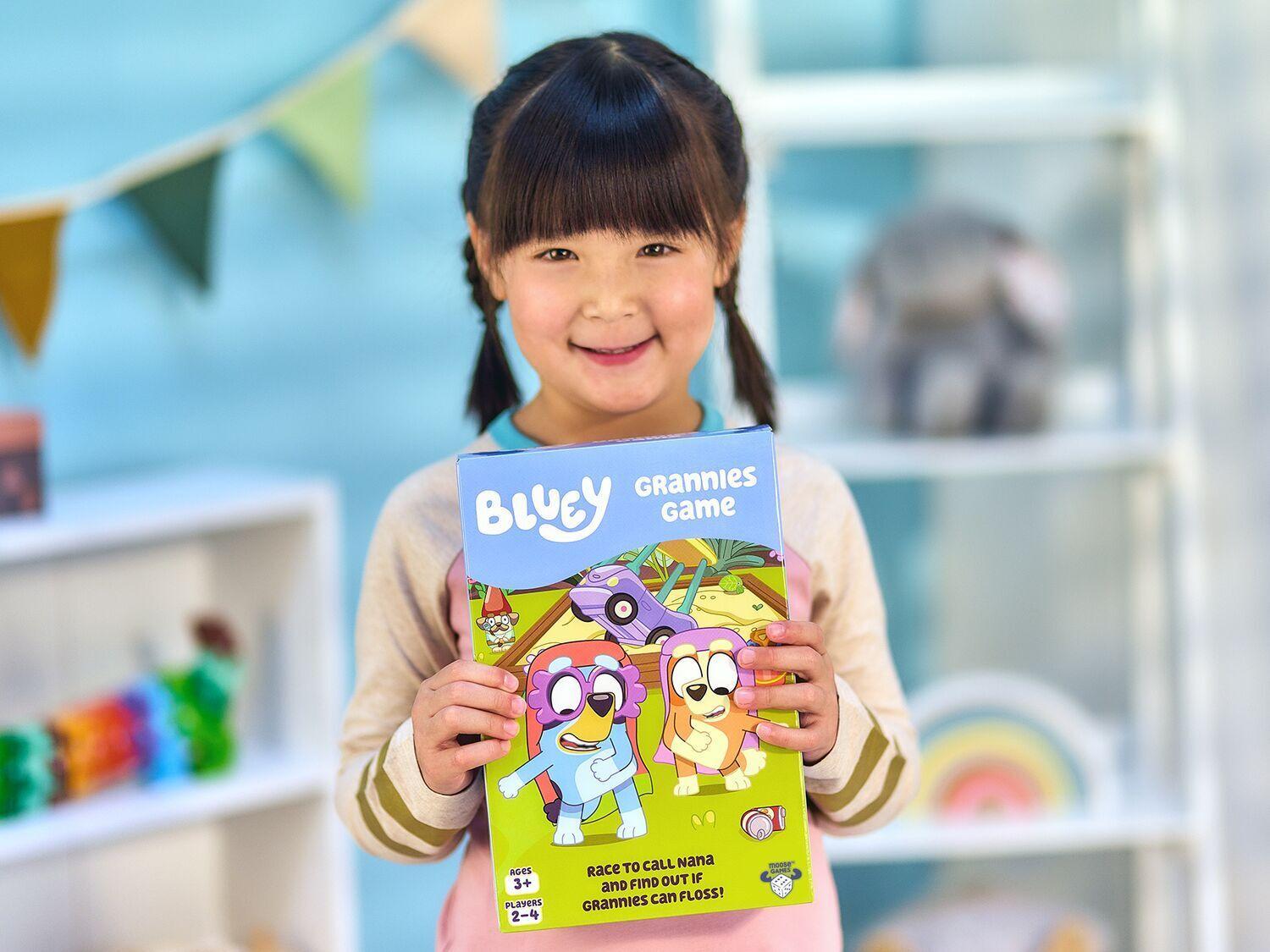 Get ready to giggle with the Bluey Grannies Game, where kids aged 3+ join Bluey, Bingo, and their granny alter-egos — Janet, Rita, Gladys, and Madge — in a race to call Nana and find out: can grannies floss?Inspired by the “Grannies” episode, players collect fun items like glasses and walking sticks to be the first to start a flossing party! With bright, sturdy pieces made for little hands, this game encourages turn-taking, imaginative play, and supports fine motor skills. Perfect for 2 to 4 players.*Features:** Fun And Interactive: Race to call Nana and find out if grannies can floss!* Collect & Race: Players aged 3+ collect items on their board like glasses and walking sticks to be the first to call Nana and start a flossing party* Based On The Grannies Episode: Brings the laughter of the beloved ‘Grannies’ episode to life, featuring Bluey, Bingo, and their hilarious granny characters* Teach Through Play: Encourages social interaction, turn-taking, and imaginative play while supporting the development of fine motor skills