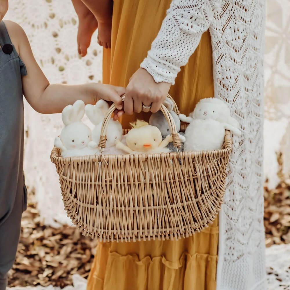 *_Bunnies by the Bay: Baby ‘Blossom Bunny’ Roly Poly Soft Toy – Pastel Pink (16cm)_*This teeniest new stuffed Bunnies by the Bay animal friend happily fits in the tiniest hands. This is a fluffy, round, pink furred stuffed Roly Poly bunny with velour face and dangly arms and legs. Features embroidered faces and signature blushed cheeks. Features knotted arms and legs, perfect for gentle chewing. Suitable from birth.*Features:** Cute character with soft scraggly fur* Dangly knotted fabric limbs* Great size for little hands* Sweet emboidered features* Baby safe from birth