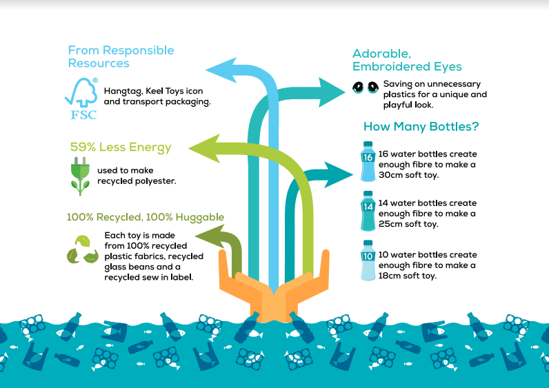 *100% Recycled – 100% Huggable!*Keeleco is the NEW 100% recycled range from Keel Toys. These eco-friendly toys are manufactured and stuffed with 100% recycled polyester from plastic waste. Weighted with recycled glass beads, these floppy toys have been perfectly designed for hugging by a loving new friend.*Features:** 100% recycled material and filling.* Measures approximately 11.5"/ 30cm.* Over 30 wild characters to collect.* Eye-catching Keel designed fabrics!* Hand-washable.*Suitable for ages 3 & up*