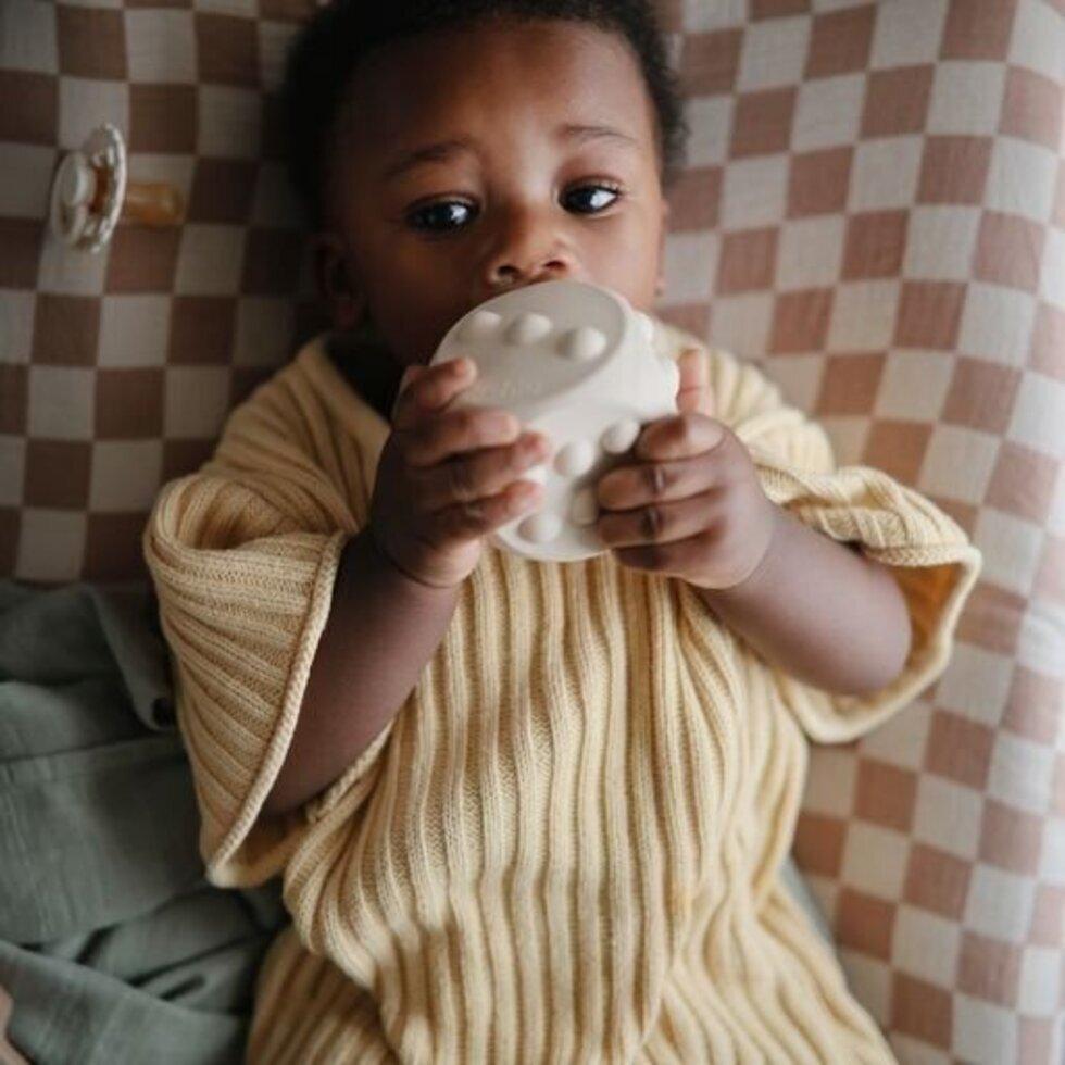 *_Mushie: Dice Press Toy – Dried Thyme/Natural (2 Pack)_*he Dice Press Toy is a fun sensory toy that combines learning and play. The toy features dots that can be pushed and popped.This encourages fine motor skill development while also providing a tool for teaching counting and simple arithmetic. It is made from food-grade silicone in soft colors and a simple design.The Dice Press Toy provides endless hours of fun for the little ones.*Features:** Let the little ones learn while they play with our beautiful products from Mushie.* Our toys will stimulate the senses and develop both body and brain.* Material: 100% food-grade silicone* Age: 10+ months* Wash with warm, soapy water and let air dry
