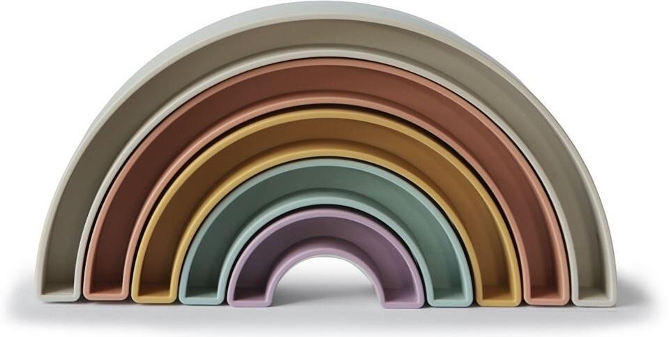 *_Mushie: Rainbow Stacker – Tropical_*A beautiful and playful Rainbow Stacker in various colors from Mushie!Activate your baby with this fun and colorful rainbow toy in various colors. The rainbow will help develop both body and brain and will make sure that playtime will be fun and creative for hours.Let the imagination flow with the endless possibilities of stacking, sorting, and playing with the rainbow that promotes learning. You can also use it as a stylish decoration for your baby’s room.*Features:** Helps develop cognitive reasoning, fine motor skills, and language development* Made in Denmark* Clean with warm, soapy water and let air dry* Recommended for ages: 0–3* Material: Phthalate-free plastic* Measurements: Depth: 1.1875 in (front to back) / Width: 6.625 in (side to side) / Height: 3.5 in (top to bottom)