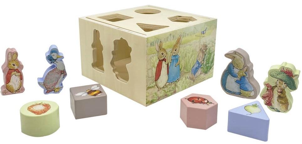 *_Peter Rabbit: Wooden Shape Sorter_*The Peter Rabbit Wooden Shape Sorter features 8 Peter Rabbit themed pieces with different shapes. It has geometric shapes and die cut character shaped perfect for little hands. Helps develop childrens fine motor skills. Suitable for ages 18 months+.*Features:** 8 Peter Rabbit themed pieces* 2 puzzles in 1!* Features geometric shapes & die cut characters* Perfect for little hands* Suitable for ages 18 months+