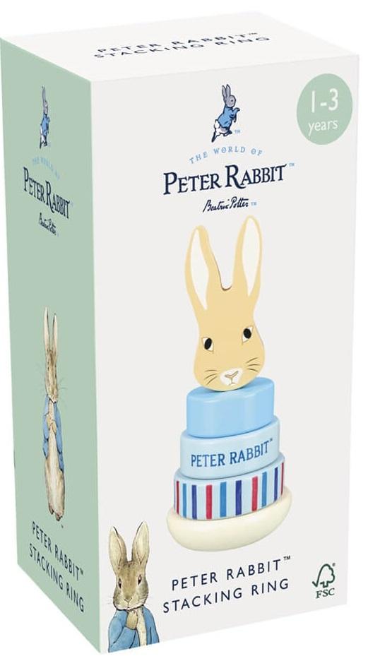 *_Peter Rabbit: Wooden Stacking Ring_*This wooden Peter Rabbit stacking ring is the perfect toy for toddlers. Painted in shades of blue and topped with Peter Rabbit, the stacking ring is great for encouraging hand-eye coordination, and helping develop shape and size recognition. This product is made from FSC® – certified wood.*Features:** Perfect toy for toddlers* Encourages hand-eye coordination* Helps develop shape & size recognition* Suitable for ages 1–3 years* Made from sustainable wood