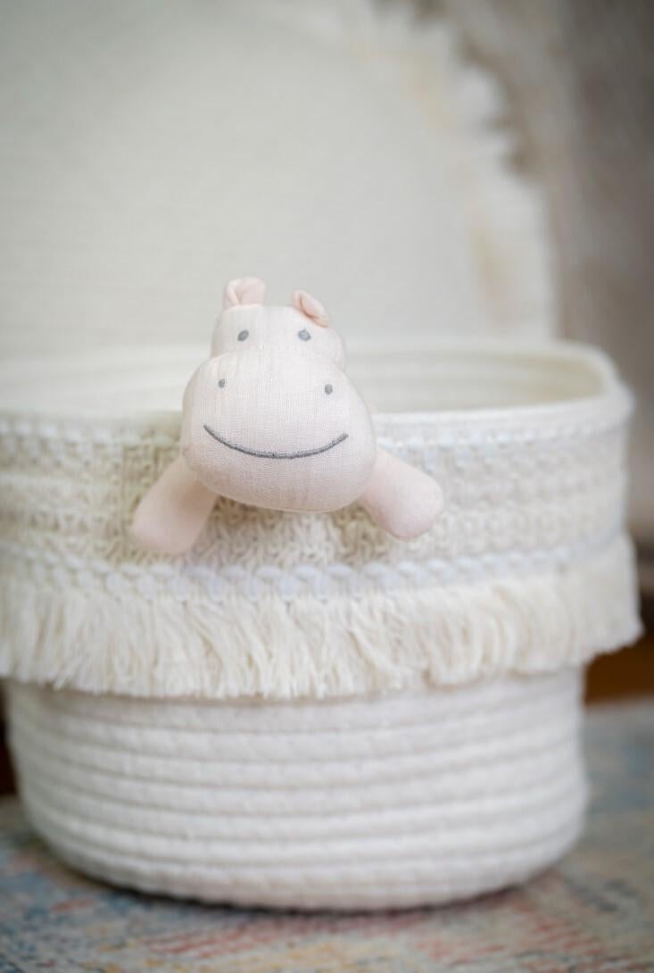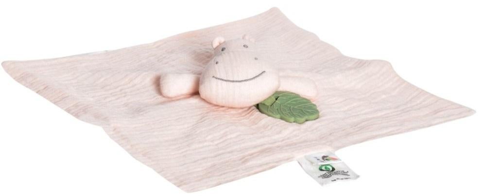 *_Tikiri: Muslin Comforter with Rubber Leaf Teether – Hippo_*A huggable and soft organic hippo blankie. A delightful organic soft comfort toy that is sure to become your child's best friend. This hippo features a soft head, little arms to hold and an all rubber leaf for little ones to relieve their teether gums on.*Features:** A huggable and soft organic hippo blankie.* A delightful organic soft comfort toy that is sure to become your child's best friend.* This giraffe features a soft head, little arms to hold and an all rubber leaf for little one's to relieve their teether gums on.* Made from a combination of Pure Organic Natural Rubber and Organic fabrics.* Rubber leaf is great for providing comfort when teething.* Soft Natural fabrics in bold colours* Comforter is easy to grip for small hands.* Ages: 0+ months* OCS100 Certified* Socially Responsible Manufacturing -Sustainable toys that are biodegradable -Safe Non-Toxic -Plastic Free -Made with ❤ in Sri Lanka