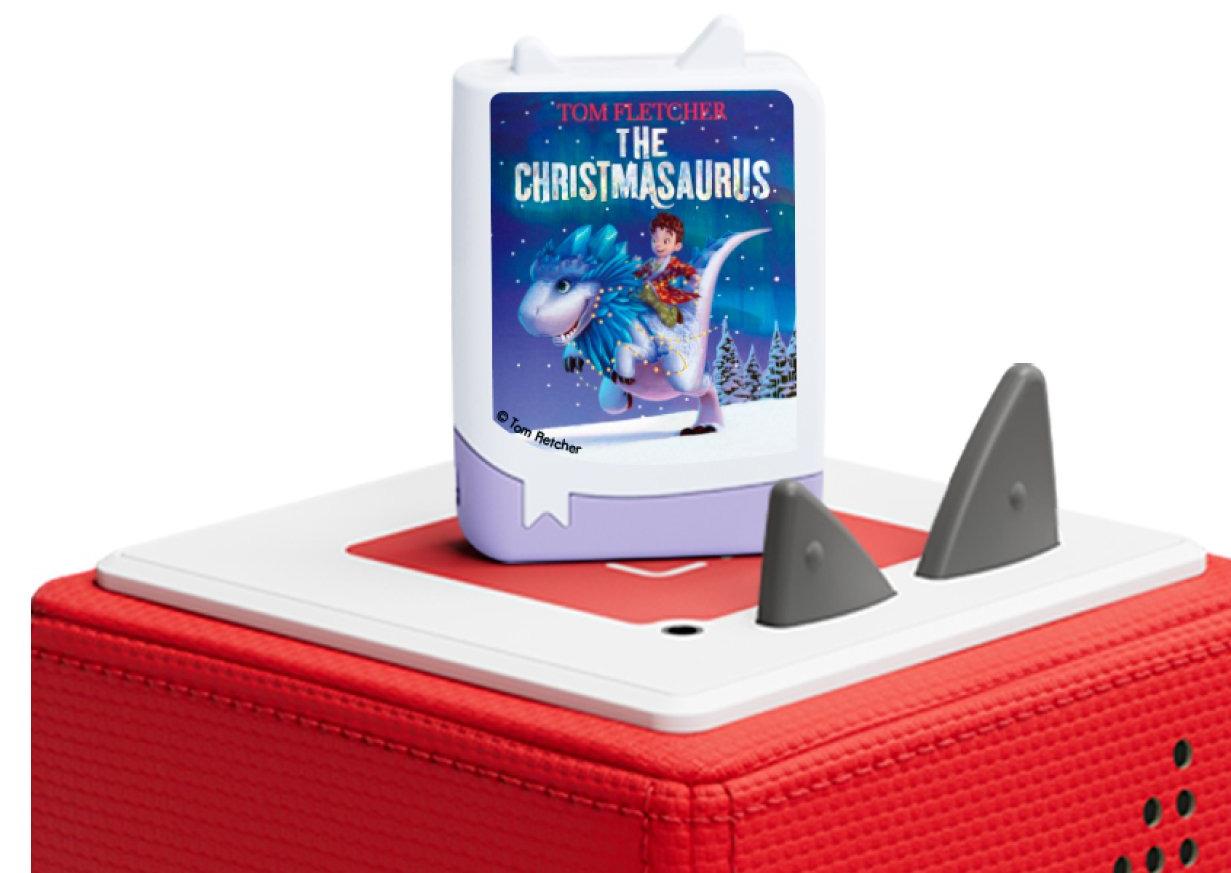 *tonies: Audiobook – Tom Fletcher (The Christmasaurus)*From best-selling author, and Mcfly member, Tom Fletcher, comes the first instalment of the Christmasaurus tales. Listeners just pop this Book Pocket Tonie on the Toniebox and snuggle up to join William, his dad (who is also the number one fan of Christmas) and the Christmasaurus on one big festive adventure. This is a full length, completely unabridged reading of The Christmasaurus and is perfect for cosy listening in the run up to Christmas and beyond!Tonies are characters that feature content, stories and songs from an ever-growing collection of modern favourites and timeless classics. Swapping stories is as simple as changing the Tonie on your Toniebox. Each Tonie is unique and includes its own selection of child-friendly content. (Artists performing tonies songs and stories may differ from those performing original licensed content.)*Specifics:** *Recommended Age* 6+* *Running Time* – approx. 338 minutes* *Features* – Magnetic, hand-painted* *Contents* – 1× Tonie* *Material* – Plastic*Tracklist:*01\. Opening Credits02\. Chapter 1: William Trundle03\. Chapter 2: The Frozen Egg04\. Chapter 3: Santa's Bottom05\. Chapter 4: Inside the Egg06\. Chapter 5: The Christmasaurus07\. Chapter 6: Magnificently Magical Flying Reindeer08\. Chapter 7: The Thing About William09\. Chapter 8: Wheely William10\. Chapter 9: Brenda the Revenger11\. Chapter 10: What William Wants12\. Chapter 11: Watching William13\. Chapter 12: A Stuffed Dinosaur14\. Chapter 13: The Night Before, the Night Before Christmas15\. Chapter 14: A Secret Passenger!16\. Chapter 15: The Hunter17\. Chapter 16: The Rarest Creature on the Planet18\. Chapter 17: A Dinosaur in the House19\. Chapter 18: A Boy and a Dinosaur20\. Chapter 19: Bumping into Brenda21\. Chapter 20: Swapping Secrets22\. Chapter 21: The Hunt Begins23\. Chapter 22: Cracking the Code24\. Chapter 23: Anicient Ghosts25\. Chapter 25: The Candy Cane26\. Chapter 26: Santa Returns27\. Chapter 26: Santa Returns28\. Chapter 27: What William Really Wants29\. Chapter 28: The Christmasaurus Stays30\. Chapter 29: Smoke31\. Chapter 30: A Trundle Tornado32\. Chapter 31: Game Over33\. Chapter 32: Feathers34\. Chapter 33: The Wonderful Thing About Christmas