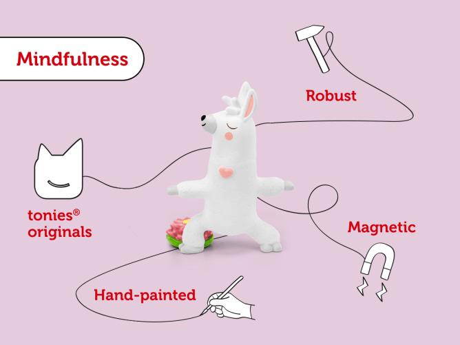 *tonies: Yoga Tonie – Llama*Tonies Mindfulness Yoga with Sara the Llama is a cosy wind-down for bedtime or a peaceful pause after playtime, perfect for little llamas. Join Sara the Yoga Llama as she guides you through four calming stories from Llamatopia, with simple yoga poses, meditations, and soothing music.Tonies are characters that feature content, stories and songs from an ever-growing collection of modern favourites and timeless classics. Swapping stories is as simple as changing the Tonie on your Toniebox. Each Tonie is unique and includes its own selection of child-friendly content. (Artists performing tonies songs and stories may differ from those performing original licensed content.)*Specifics:** *Recommended Age* 3+* *Running Time* – approx. 90 minutes* *Features* – Magnetic, hand-painted* *Contents* – 1× Tonie* *Material* – Plastic*Tracklist:*01\. Intro02\. The Magic Island (Story)03\. The Mysterious Mountain (Story)04\. The Wonderful Savannah (Story)05\. The Amazing Farm (Story)
