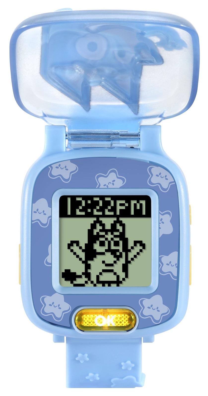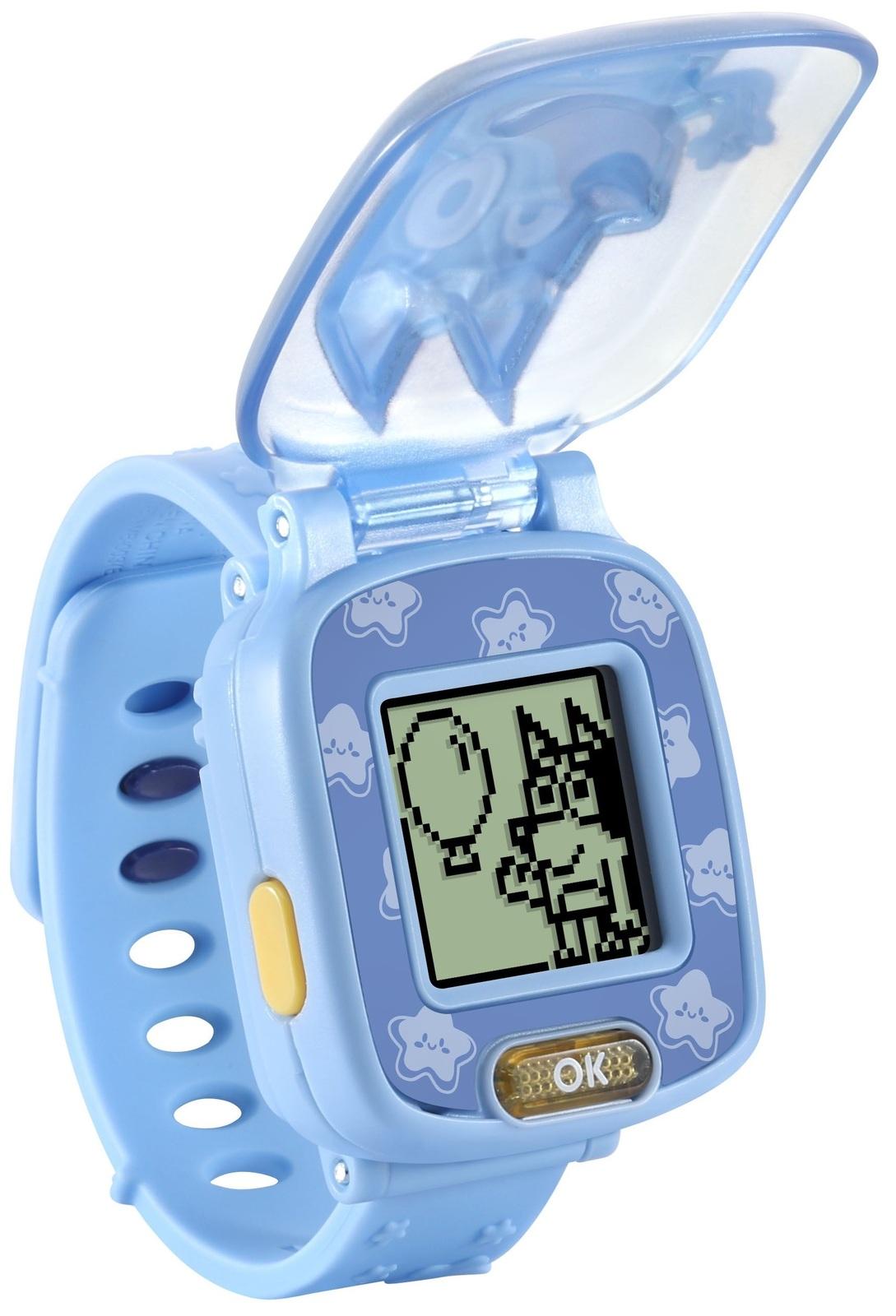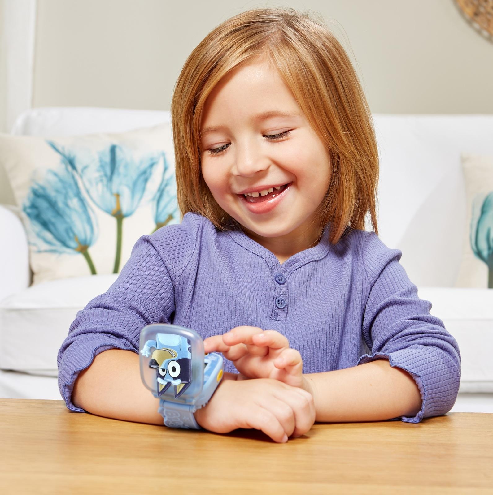 *Let’s play with Bluey, Bingo and the Wackadoo Watch!*This wristwatch for kids featuring Bluey includes eight digital clock faces, time tools and four games. Hear the voices of Bluey and Bingo guide you through games that include characters from the show. Bandit has wound Bingo up like a wind-up toy! Press the left and right buttons to help Bingo avoid obstacles that appear in the classroom. Bluey wants to play a game of keepy-uppy! Help Bluey keep a balloon off the ground by using the left and right buttons.At Hammerbarn, Bluey wants to buy the same thing as Bingo. Match an object with its shadow to find a matching item. See Bingo hide her plush bunny Floppy into one of three chickenrat eggs and mix them up. Watch carefully and choose the egg where Floppy is hidden. Time tools include a stopwatch, timer and alarm. Wackadoo!*Features:** This kids’ watch features Bluey on the cover and characters from the hit show Bluey* Watch includes eight digital clock faces, stopwatch, timer and alarm* Four playful games inspired by the show encourage imagination with activities featuring Bluey, Bingo and more* Hear the voices of Bluey and Bingo say popular phrases from the show Bluey while playing each activity* Perfectly sized for kids, this watch tells time and encourages play and imagination through games; makes a perfect holiday gift or birthday present*Suitable for Ages 3 & Up*\*\*1 x CR2450 Battery Required (Not Included)\**_This Product Requires a Button Battery_*If swallowed, a lithium button battery can cause severe or fatal injuries within 2 hours. Keep out of reach of children. If you think batteries may have been swallowed or placed inside any part of the body, seek immediate medical attention.