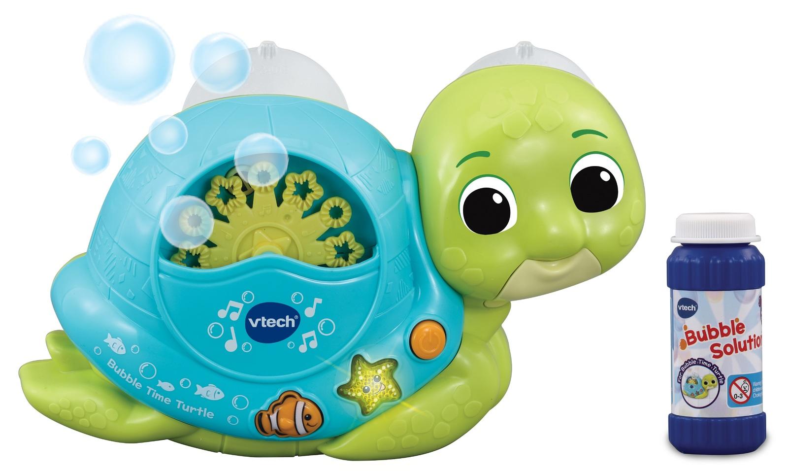 *Pop some bubbles with the Bubble Time Turtle by VTech!*This cute turtle magically releases bubbles in time with the music and sounds. Clown fish and light up starfish buttons introduce sea animals and play fun sing-along songs and melodies. Features 2 strong suction cups so that turtle can easily attach to the side of the bath or bathroom tiles. Popping the bubbles promotes hand-eye coordination and sing-along songs and fun phrases help encourage first words. One bottle of bubble mixture included. Features 12 fun melodies, 4 catchy sing-along and endless fun. Let’s pop, pop, pop some bubbles! The Bubble Time Turtle will not be able to form bubbles if submerged under water and is designed to be attached to the side of the bath or bathroom tiles.*Suitable for Ages 3 & Up**3 x AA Batteries Required (Not Included)*