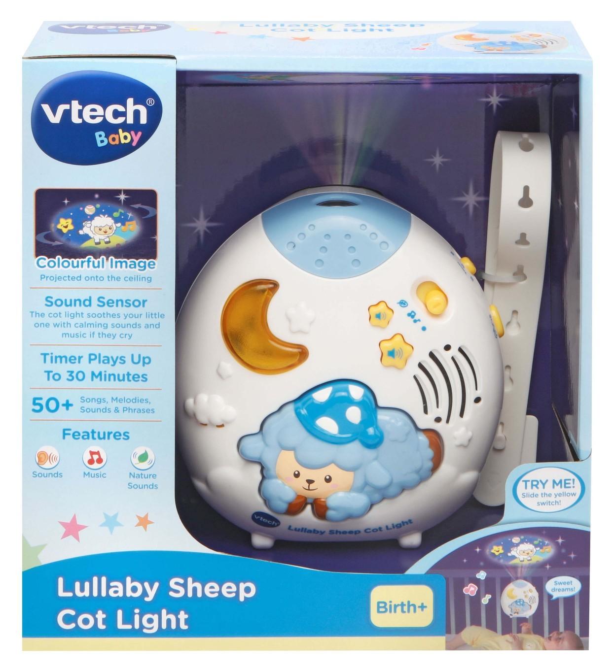 *Press the Lullaby Sheep Cot Light’s sheep button to play soothing responses that calm your little one and send them off to a peaceful sleep.*Responses include 3 sing-along lullabies, 40 calming melodies, relaxing nature sounds and soothing shushing sounds. Choose between the 2 modes to play either music or sounds. The cot light features a 10, 20 and 30 minute timer, volume controls and light controls that operate the night light and the rotating light pattern projected onto the ceiling. The built-in sound sensor plays calming responses if baby cries. Strap included to securely attach the unit to a cot.*Features:** Loving sheep character sings little one to sleep* Whilst projecting a rotating light pattern onto the ceiling.* Plays 3 sing-along songs, 40 calming melodies* Relaxing nature sounds and soothing shushing sounds* Features a 10, 20 and 30 minute timer, volume controls and light controls.* The built-in sound sensor automatically plays calming responses if baby cries.* Includes a strap to securely attach the unit to a cot.*Suitable for ages 1m & up*