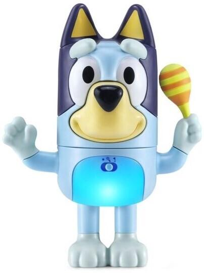 *VTech: Shake It Bluey*It's time to move and groove together with Shake It Bluey-hooray!It's time to move and groove together with Shake It Bluey-hooray! Turn Bluey's head back and forth to see who's around. Wave hello or pretend the hand is a claw to play ticklecrabs. Tickle, tickle, tickle! Make some noise by shaking the shaker, then press her nose for a sneeze. Achoo! Bop down on Bluey's body and count together to ten. Now let's play a game. Follow along to the instructions and move each body part in turn. If you miss a step, don't worry: just pick yourself up and try again. The show must go on! Watch as Bluey's belly lights up to the music, then go into dance mode with her. Do the floss, wave your arms, dance in whatever way moves you-what's important is that you shake it!*Features:** Let's play! Bop, turn, tap and press five different parts of Bluey while hearing common phrases from the show* Follow along to the game's directions and help twist and turn her body around* Go into dance mode for real life and have kids move their body just like Bluey* Light up tummy provides fun visuals, keeping the beat by flashing along to the music*Suitable for Ages 3+*_Required: 2× AA Batteries (not included)_