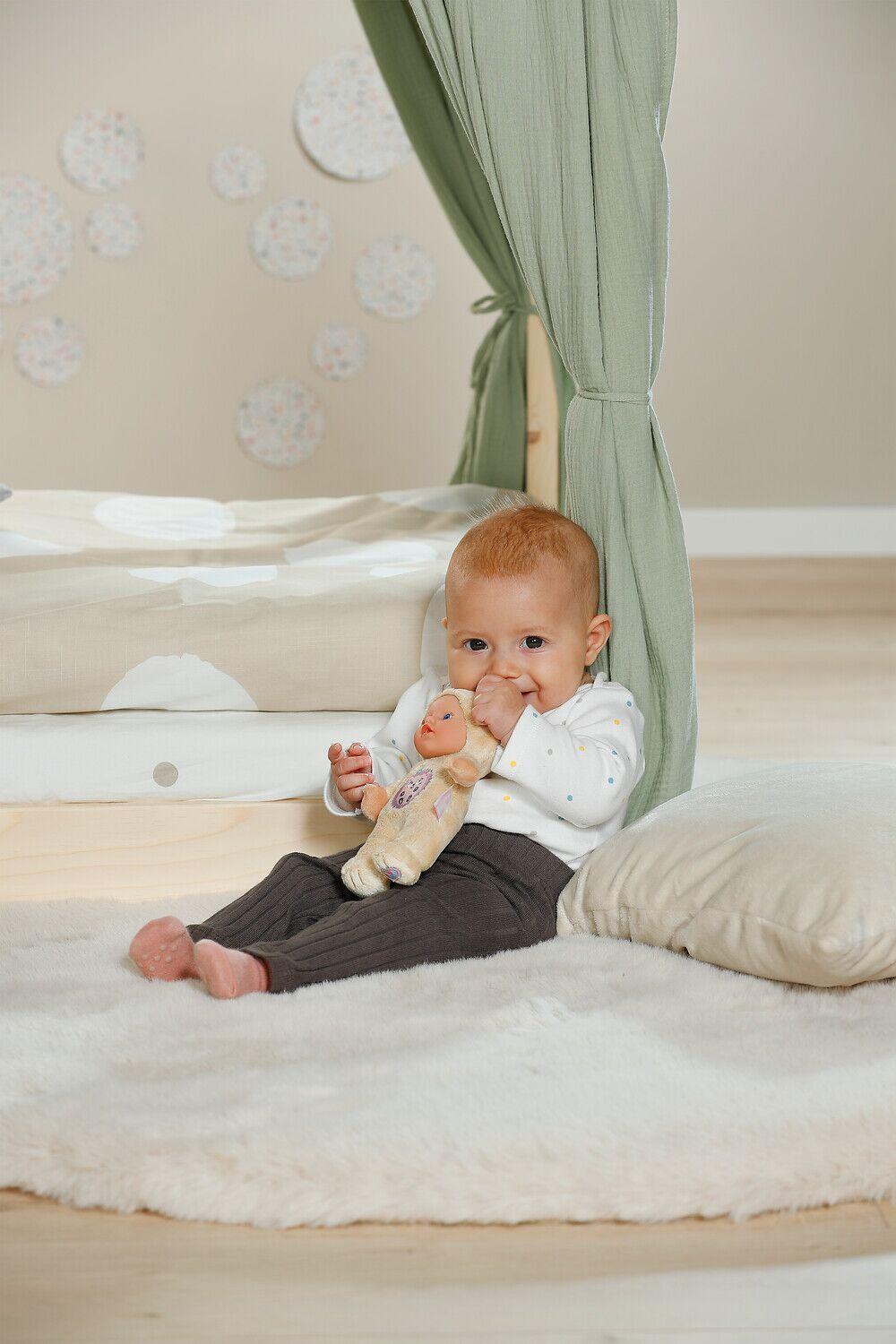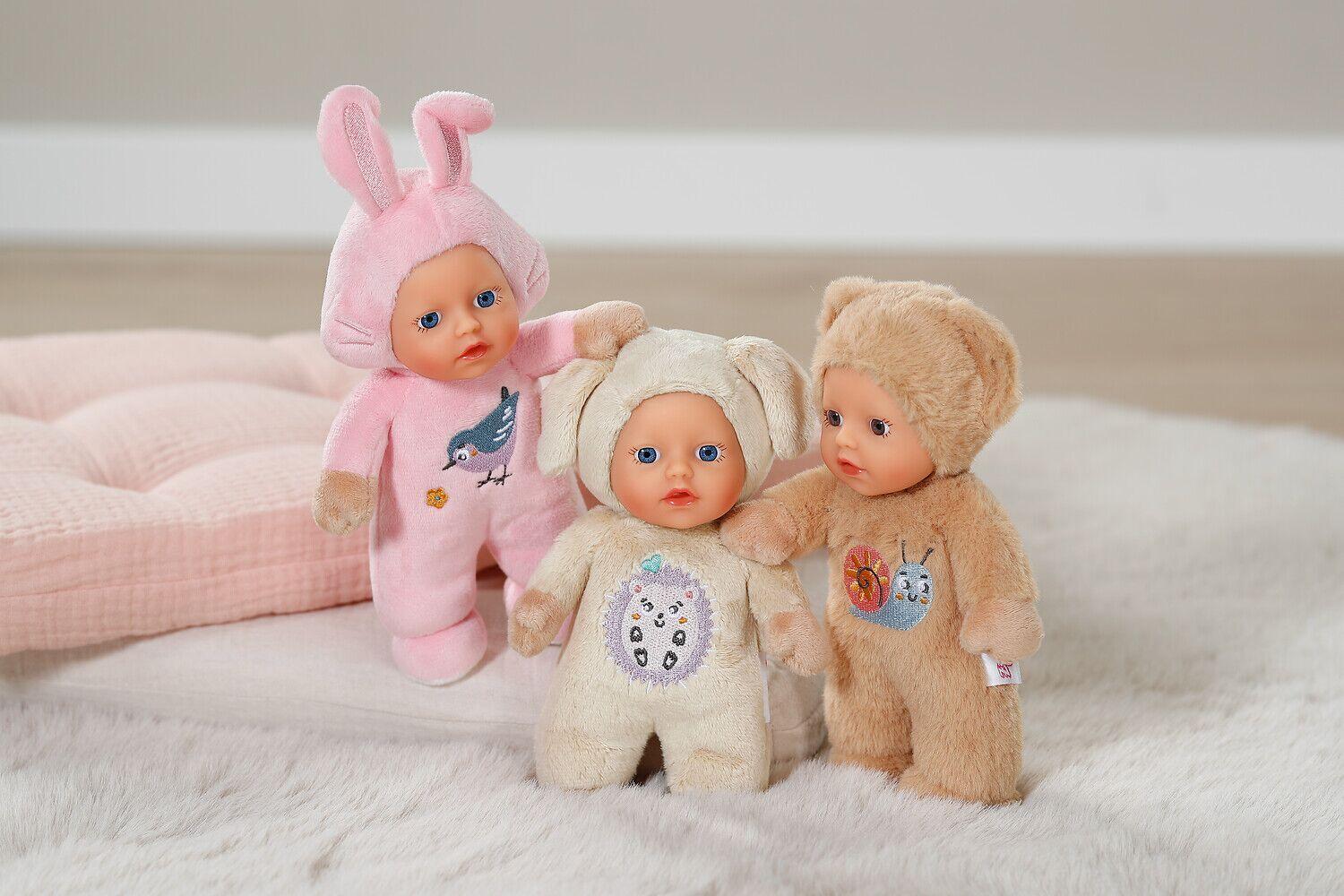 With lovable animal ears and dinky bobtails that crinkle and crackle when touched, BABY born Cutie for babies are cute as buttons!Designed especially for newborns and babies, these sumptuous softies come in two assorted styles (sold separately and selected at random) – brown baby bear or pastel-pink bunny. Both are creamy-soft for infinite cuddles, and easy for baby-hands to learn grabbing and hugging. They even have fun embroideries on their little podgy tummies and sweet little feet!In case of any spills or dribbles (little ones love exploring Cuties’ gentle vinyl heads with their mouths!), these fuzzy doll friends can be handwashed.*Features:** Cheery animal-themed 18cm dolls for babies.* Perfect for dinky hands to hug and love.* Crackly ears and tails for sensory play.* Three assorted styles available, one doll per purchase.* Suitable from birth.* No batteries required.* Handwashable.* Comes in 100% recyclable, plastic-free packaging.