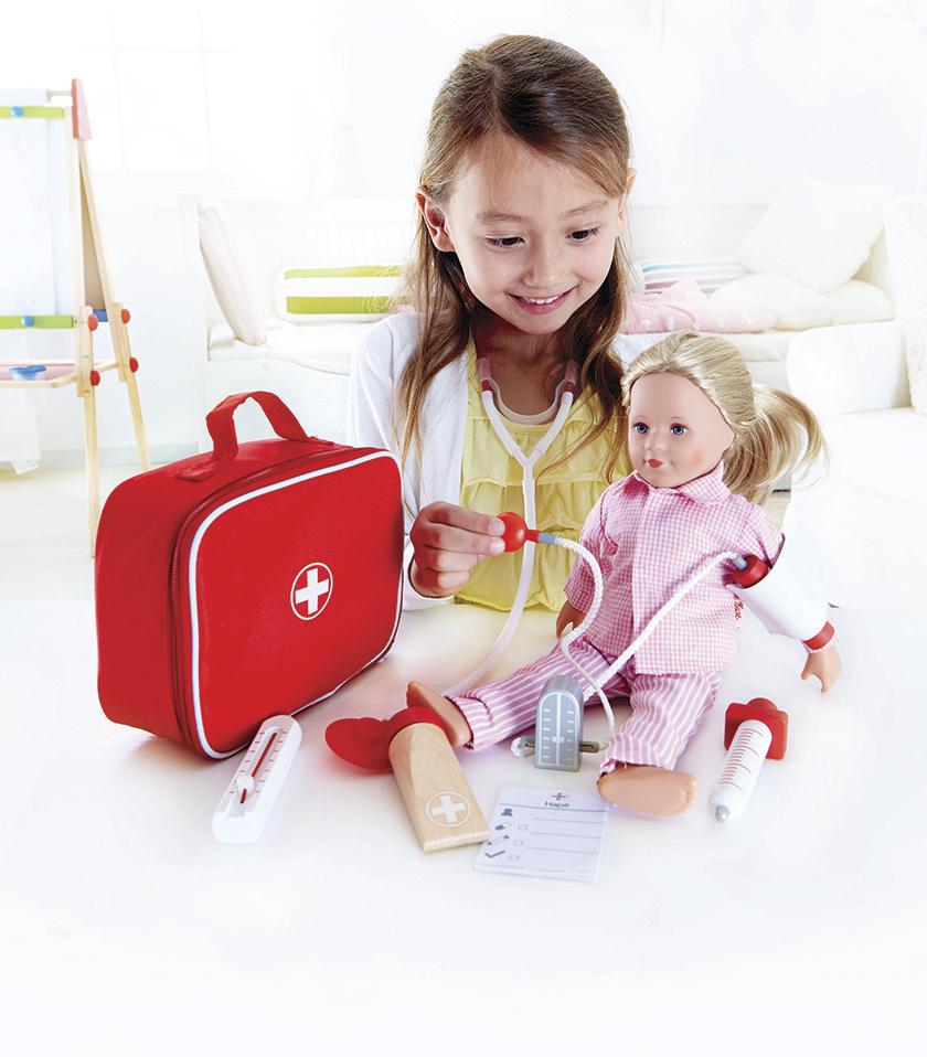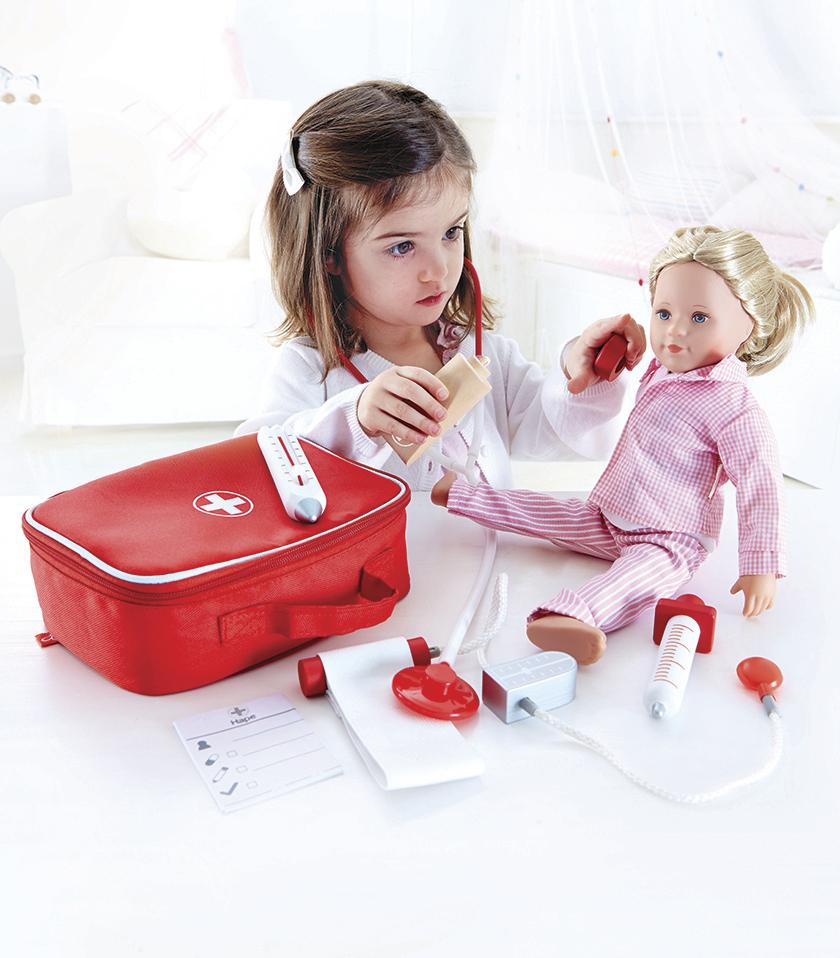 Keep your friends happy and healthy with this well-equipped doctor's kit. Complete with stethoscope, syringe, thermometer, blood pressure machine, ointment and a checklist all in a zip up Doctors Bag._Doll not included_* Age: 3+
