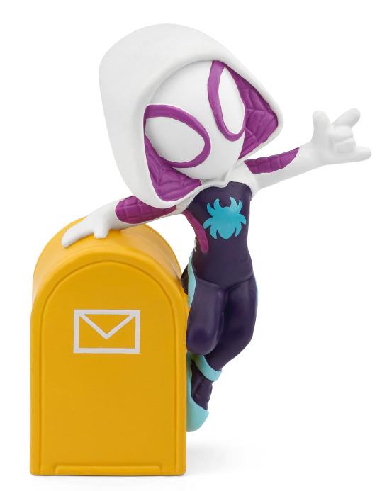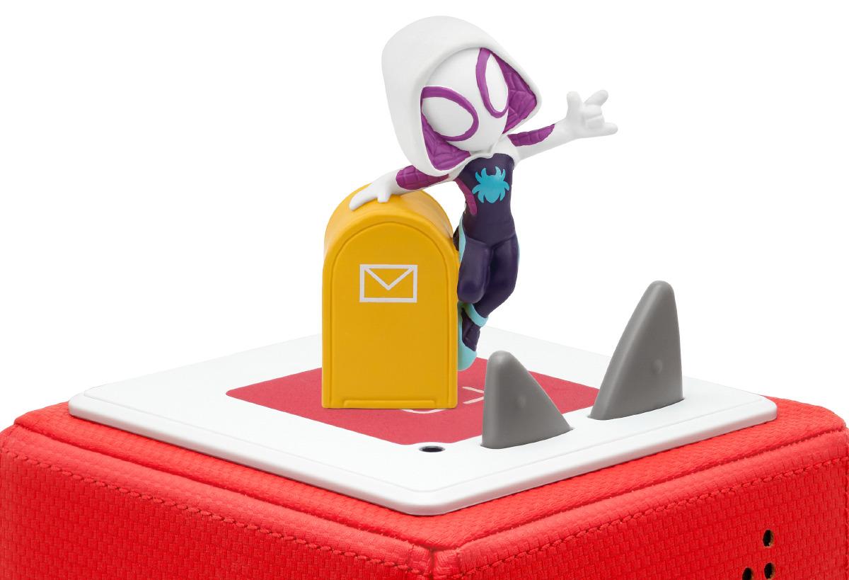 *Tonies – a new audio experience designed for little listeners!*Prepare your little spiders to join Ghost Spider, Miles Morales and Spiderman, as they travel a multiverse of stories from Marvel’s Spidey & His Amazing Friends.Get ready to ‘Go Webs Go’ – Ghost Spider and her friends, Miles Morales and Spiderman, travel a multiverse of stories in this swinging selection from Marvel’s Spidey & His Amazing Friends. Know a little Spidey who might like to join them? Well, that’s easy enough. All they have to do is just pop Ghost Spider on top of their Toniebox and they’re ready to scale the great heights of story time, wherever they are listening. There’s no need for eight legs: two ears is all that’s required for this climb. Even the youngest Spidey fans will enjoy these web-spinning tales, which make perfect listening during long car journeys and for at-home play.Tonies are characters that feature content, stories and songs from an ever-growing collection of modern favourites and timeless classics. Swapping stories is as simple as changing the Tonie on your Toniebox. Each Tonie is unique and includes its own selection of child-friendly content. (Artists performing tonies songs and stories may differ from those performing original licensed content.)*Specifics:** *Recommended Age* – 3+* *Running Time* – approx. 39 minutes* *Features* – Magnetic, hand-painted* *Contents* – 1× Tonie* *Material* – Plastic*Tracklist:*1. Marvel’s Spidey and His Amazing Friends Theme Song2. Webs Up Song3. Super Hero on the Beat Song4. *tonies Story:* Spidey and His Amazing Friends – Swing With A Stomp