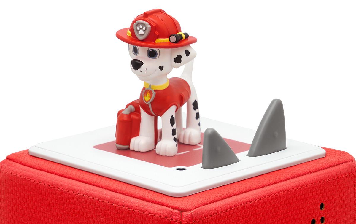 *Tonies – a new audio experience designed for little listeners!*From the firehouse to his fire truck, Marshall is a Dalmatian who is all action! Are you ready for a ruff ruff rescue! Led by a young boy named Ryder, the PAW Patrol pups: Marshall, Rubble, Chase, Rocky, Zuma and Skye – use their unique blend of skills to save the day at Adventure Bay! PAW Patrol teaches bravery and heroism, as well as lessons on caring for animals.Tonies are characters that feature content, stories and songs from an ever-growing collection of modern favourites and timeless classics. Swapping stories is as simple as changing the Tonie on your Toniebox. Each Tonie is unique and includes its own selection of child-friendly content. (Artists performing tonies songs and stories may differ from those performing original licensed content.)*Specifics:** *Recommended Age* – 3+* *Running Time* – approx. 54 minutes* *Read by* – Alex D’Attoma* *Features* – Magnetic, hand-painted* *Contents* – 1× Tonie* *Material* – Plastic*Tracklist:*1. Pups Find a Genie2. Pups Save a Tightrope Walker3. Pups Save a Goldrush4. Pups Save the PAW Patroller