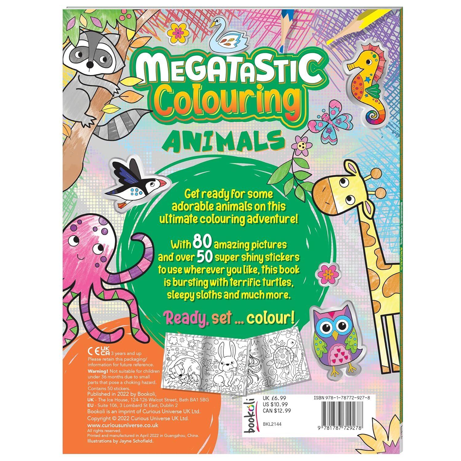 *Hinkler: Megatastic Colouring – Animals*Discover amazing worlds of fun and adventure with these mega-tastic colouring books! From stomping dinosaurs and majestic unicorns to adorable animals and pretty princesses, there’s something for everyone. Each book is bursting with big, easy-to-colour illustrations as well as super-shiny stickers that are sure to spark your little one’s creativity and fire up their imagination. Ready, set … colour!*Features:** Colouring fun for all ages!* Adorable designs* Explore the wildlife of our world*Suitable for Ages 3+*