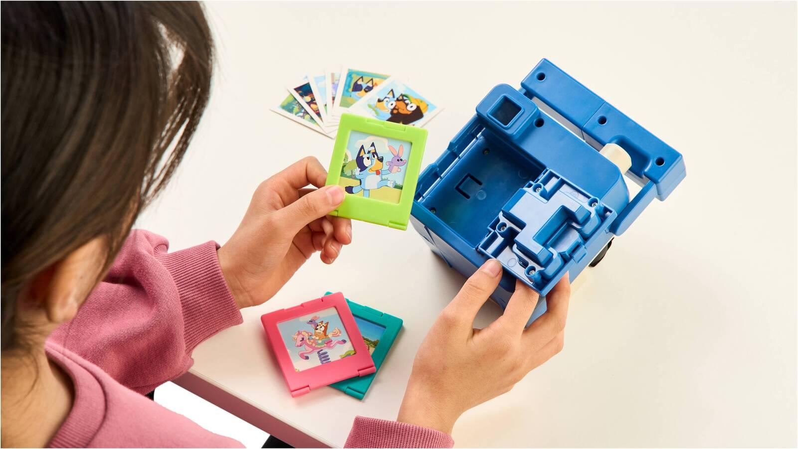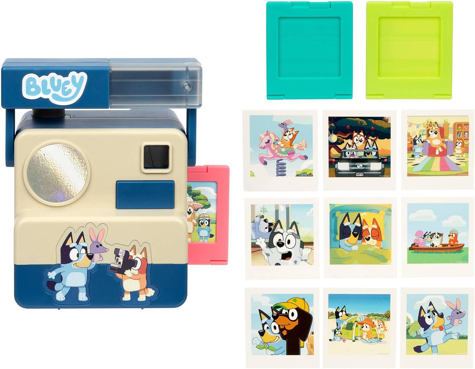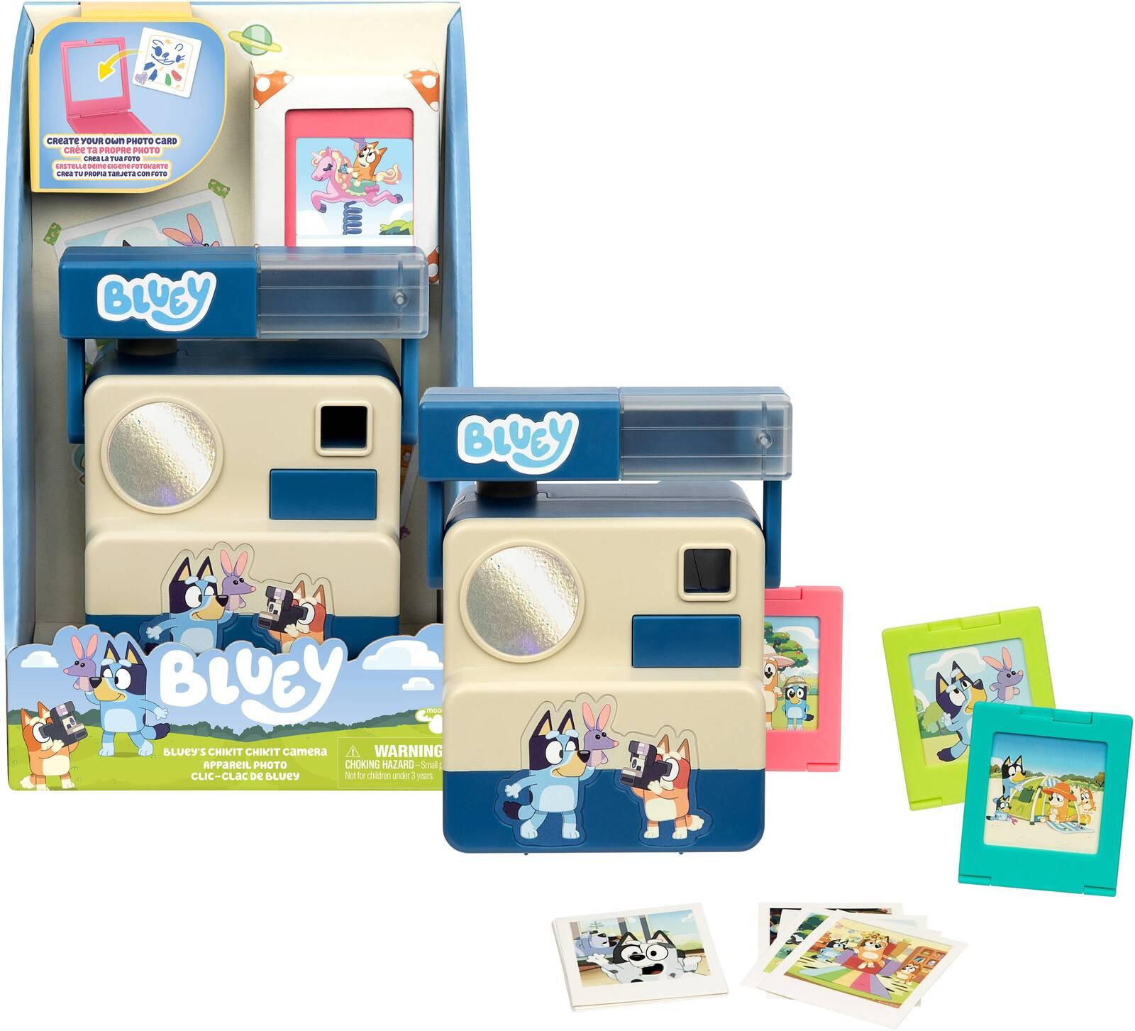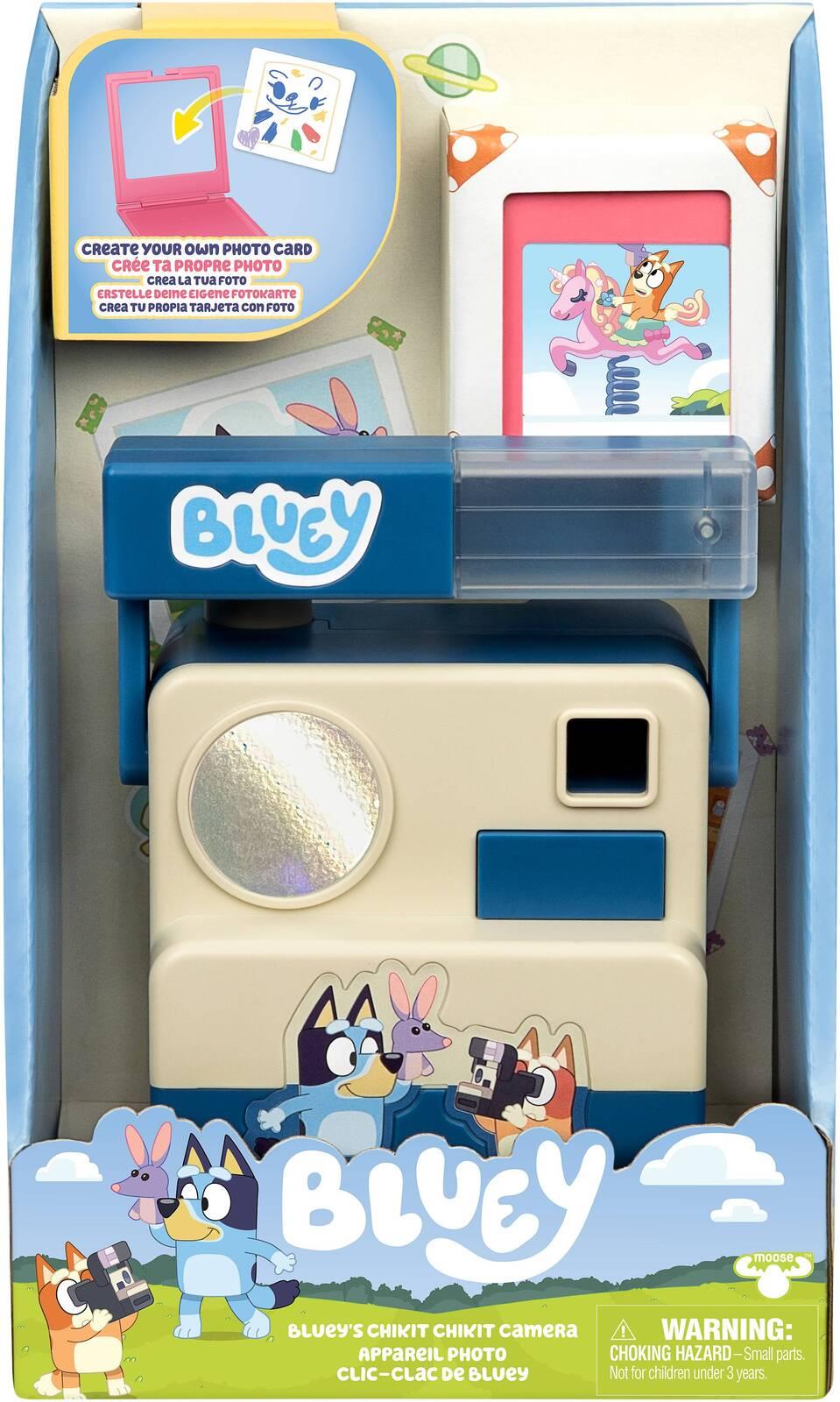 *Bring home the fun and imaginative play of Bluey with Bluey's Chikit Chikit Camera.*Inspired by the episode “Bob Bilby,” this fun role-play camera allows your child to take pretend instant photos of Bluey, Bingo and her friends. The Chikit Chikit Camera includes 10 photo cards featuring different characters and scenes from the TV show.*Features:** The photo cards can be easily loaded into 3 film cartridges that slot into the camera and pop out when a photo is taken!* Kids can even create their own photos with their drawings or other images.* Children will love using this fun-filled role-play toy to recreate some of the most memorable moments from the show and make up new adventures.* Includes: 3 x Accessories, 1 x Toy Camera, 10 x Paper Accessories* Suitable for ages 3+ years