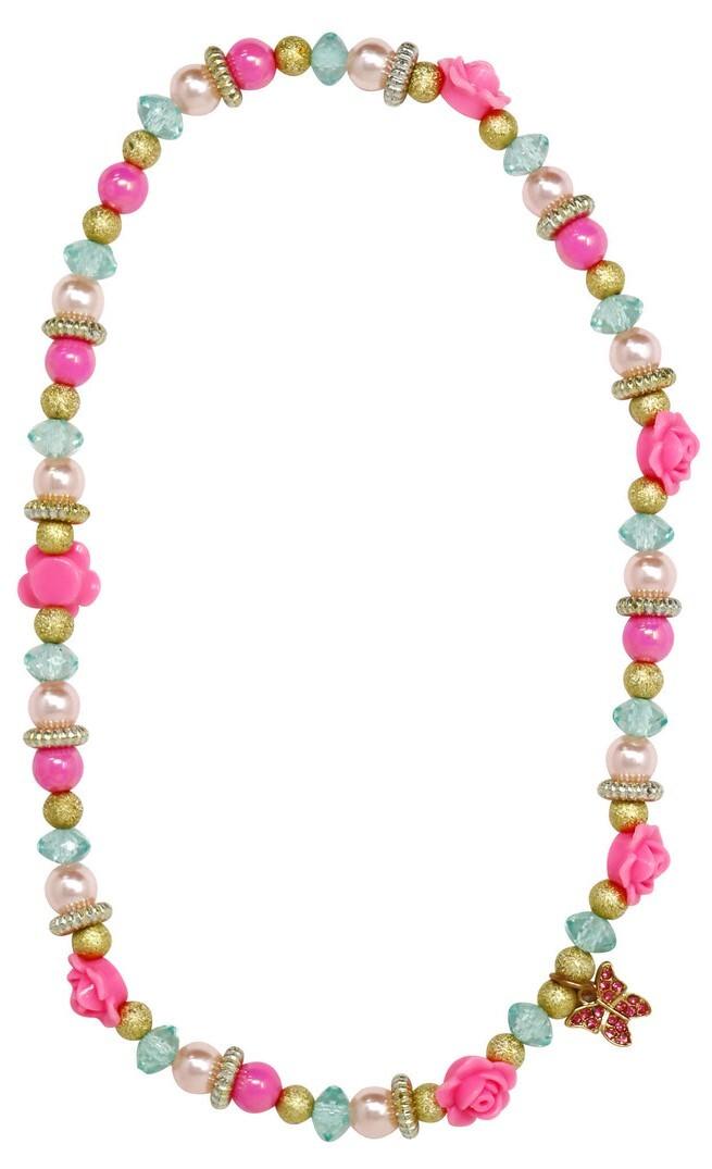 *Pink Poppy: Butterfly Flower – Necklace*Beautiful like a butterfly. This Pink Poppy's Butterfly Flower Necklace will make her the envy of her friends. Comprised of 3D-rose beads and metallic gold accents, it's finished with a dangling rhinestone butterfly charm.*Feaures:** Size: Necklace: 40.64cm (16 inch) Circumference. Pendant size: 1.15cm(W) x 1cm(H) x 0.2cm(D)* Style: Stretch Elastic* Metal rhinestone butterfly charm* 3D rose beads* Care: Wipe with a dry cloth*Suitable for Ages 3+*