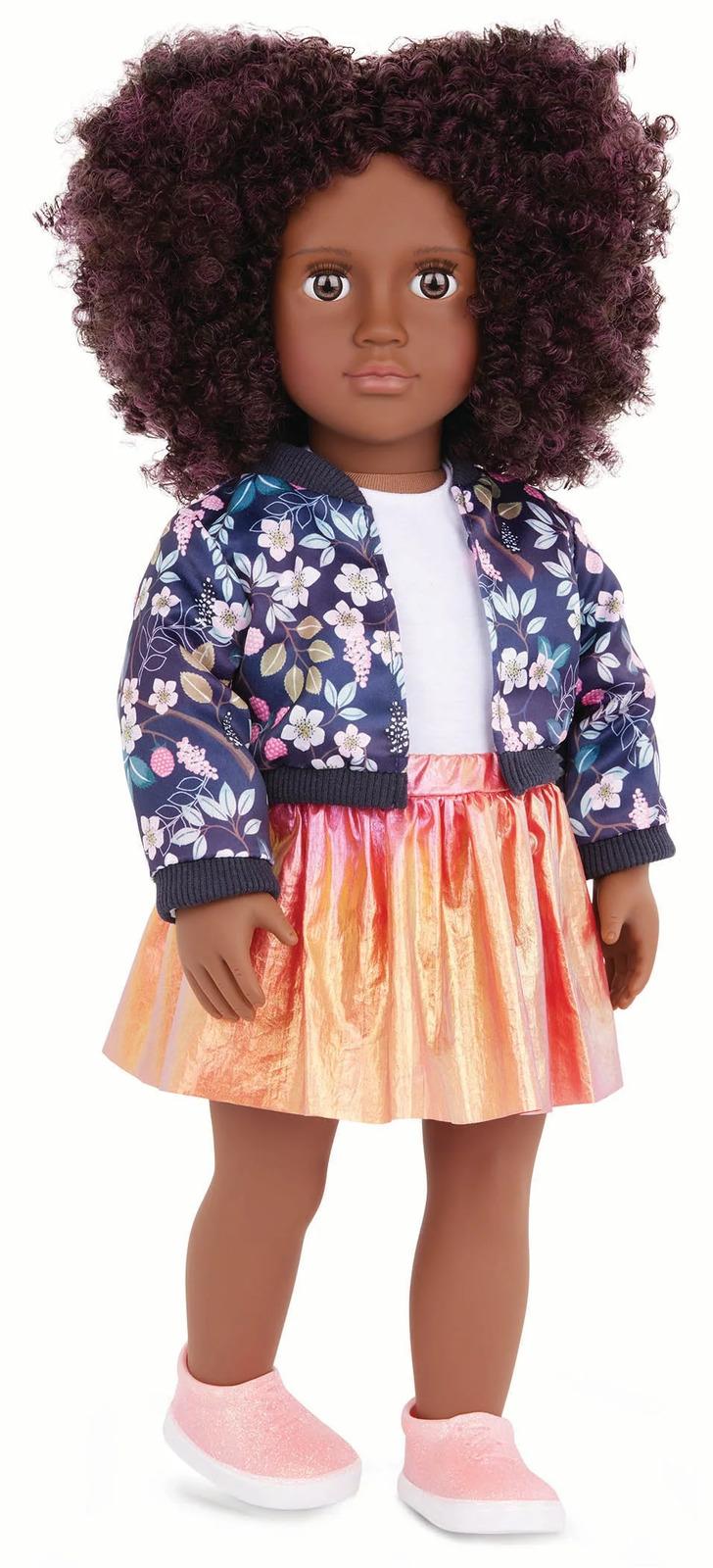 *Our Generation: Regular Outfit – Floral Jacket w/ Skirt*Make your 18-inch doll’s wardrobe shine with the Our Generation Floral Jacket w/ Skirt outfit!*Features:** 18-inch Doll Rainbow-Themed Outfit: make your 18-inch doll's wardrobe shine with the Our Generation Bright as a Rainbow outfit!* Includes: jacket, 1 top, 1 skirt, and 1 pair of shoes* Mix & Match: outfit has easy-open closures to quickly put on and remove; compatible with most 18-inch dolls, doll clothes, and accessories.* Recommended Age: suggested for kids ages 3+ (small parts).* *Clothing Set Only: dolls sold separately.**Contents:** 1 jacket* 1 top* 1 skirt* 1 pair of shoes* *Dolls sold separately**Suitable for ages 3 & up*