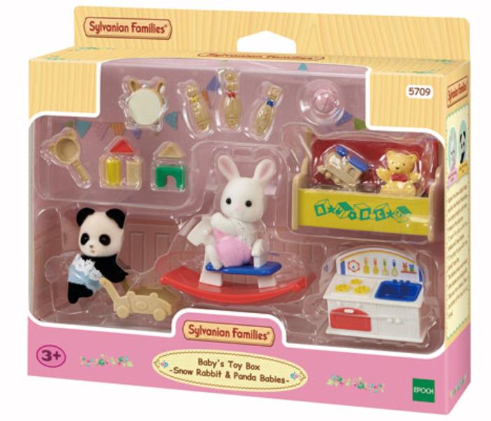 *Sylvanian Families – Babys Toys Playset*Babies Roy Pookie & Sophie Snow are best of friends, and love to play together in the nursery. This colourful set includes two figures, plus an opening toy box, play kitchen, rocking horse and a host of extra toys to play with too.*Features:** Included: 1 panda figurine, 1 bunny figurine, & accessories.* Plenty to add to the nursery with this gorgeous little set!* Stimulates imaginative role-playing by children*Suitable for ages 3 & up*