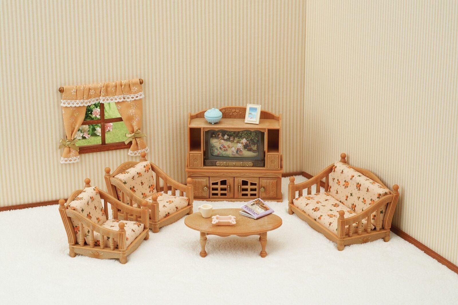 *Sylvanian Families – Comfy Living Room Set*This stylish living room set from Sylvanian Families will make an excellent addition to their collection. The sweet set features two comfy chairs, a sofa, a coffee table and a television unit, as well as other accessories. Your little one's Sylvanian Families are sure to enjoy spending time in their sumptuous new living room. Ideal for sparking imaginations and encouraging interactive role play.*Features:** Furniture set with accessories: sofa, armchair, table, television, & more.* The picture sheet can be replaced to change the television picture* The sofa and armchair material can be replaced* Stimulates imaginative role-playing by children* Figures and other accessories are not included.*Suitable for ages 3 & up*