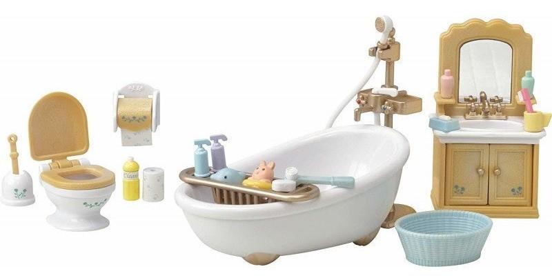 The Country Bathroom Set is just the spot for Sylvanians to freshen up with a bath after a long day playing and working in the idyllic land of Sylvania. This set includes lots of luxury bathroom accessories as pictured. Your miniature friends will be all clean with this set!* Ages 3+ years.* Contains small parts.* Part of the Sylvanian Families Collection.