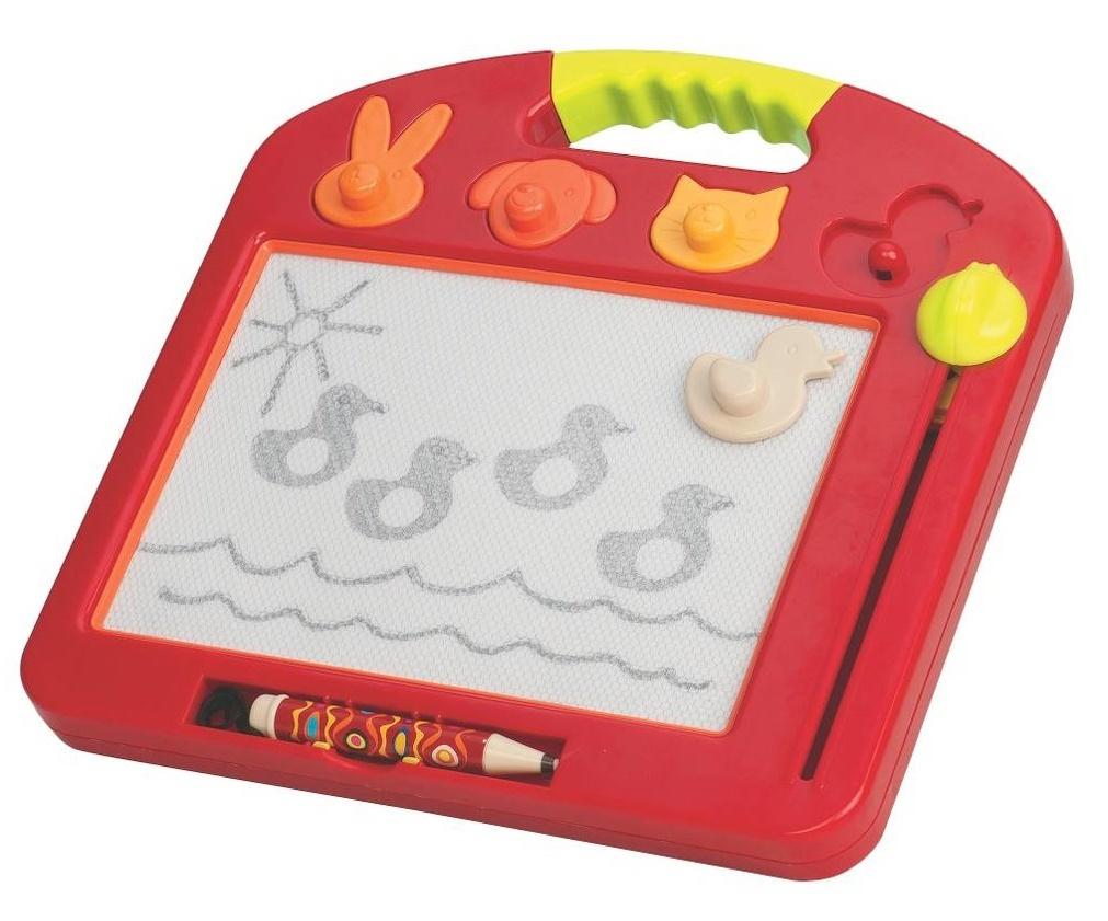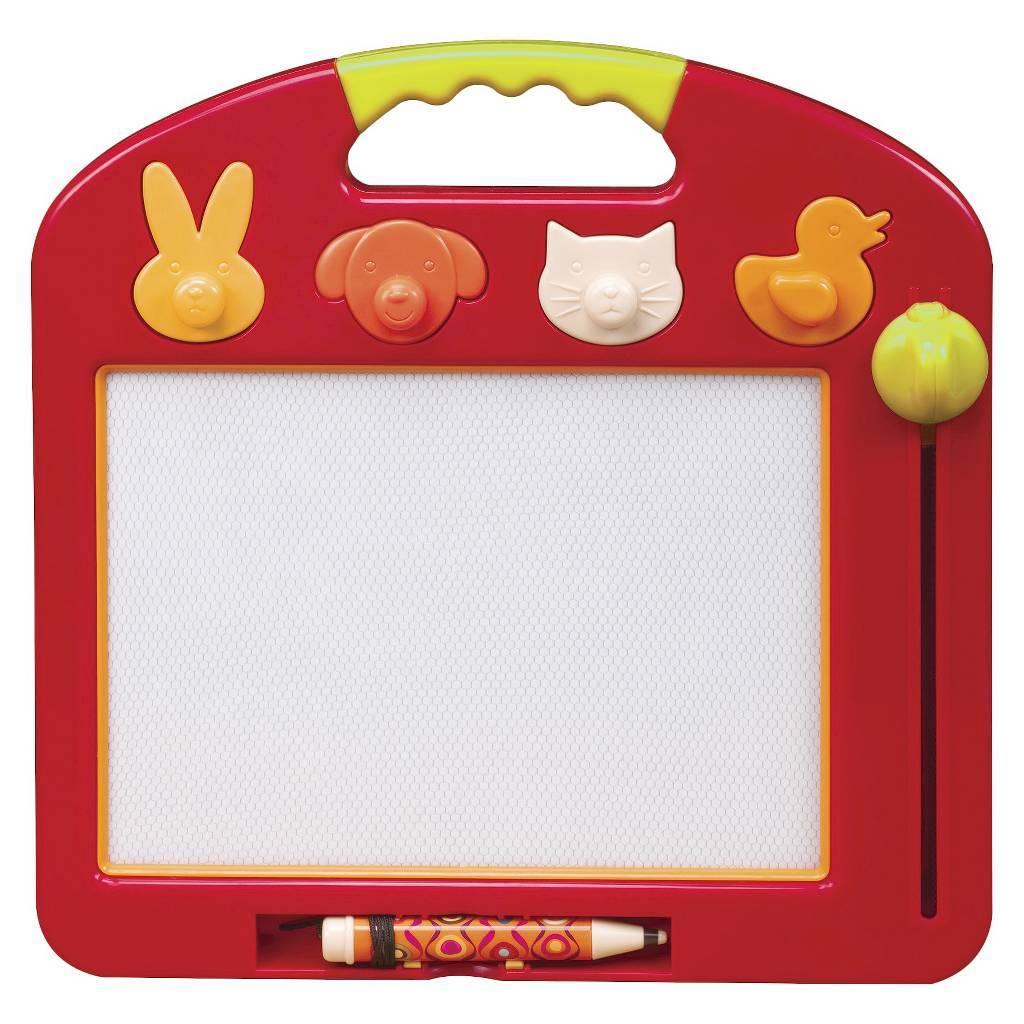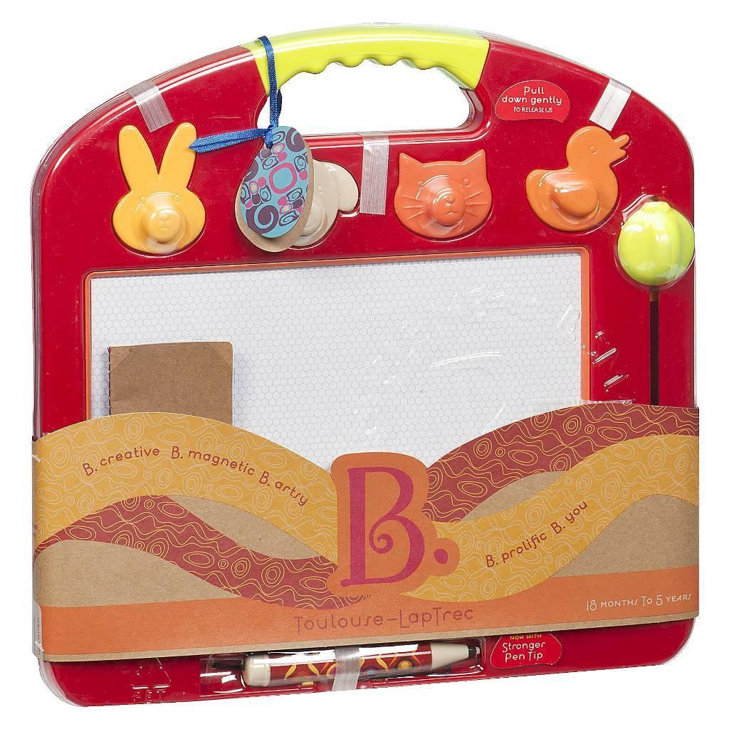 *Forget paper and crayons the only thing your little artist needs is the B. Toulouse LapTrec.*This awesome magnetic drawing board promises hours of no-mess sketching fun. A simple pull of the knob wipes the slate clean, and 4 animal stamps provide additional creative possibilities.*Features:** An ergonomic handle makes for easy carrying, and a snug cubby hole keeps the included pen safely in place during transport.* A portable sketcher in terrific Tomato, this is one seriously awesome children's toy!* Measures 12.0"Hx12.28"Wx4.0"L.*Suitable for ages 18m & up**Product colours and designs may vary*