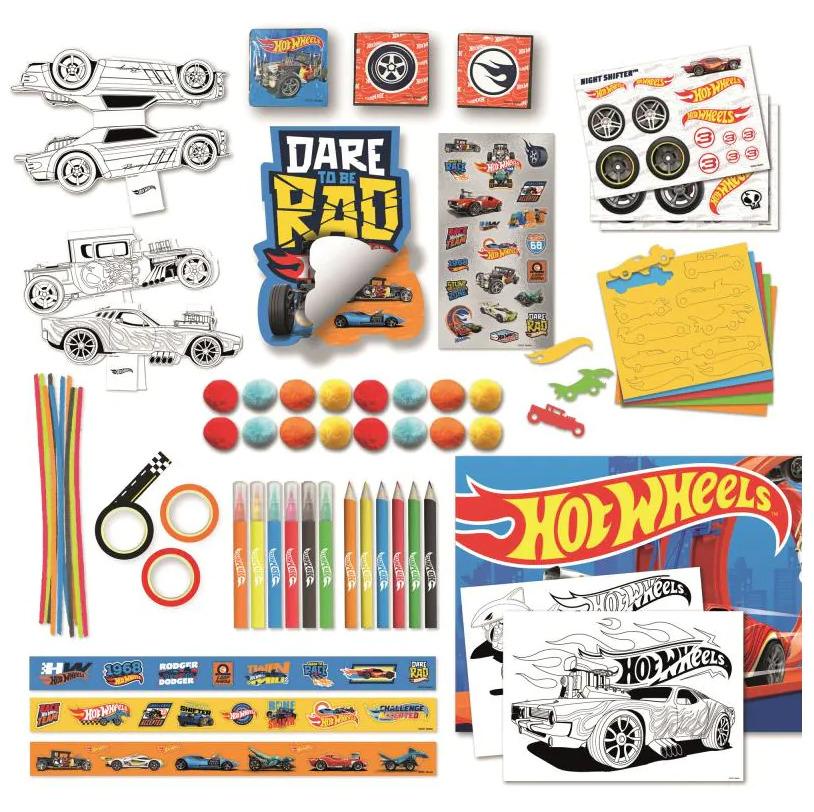 *Perfect for any Hot Wheels fan, this activity set comes with over 250 pieces of crafty essentials to colour and decorate your own unique paper vehicles*Get crafting with the 250+ piece Hot Wheels Bumper Activity Set. The craft set includes felt tip pens, sticker sheets, foil stickers, foam shapes, washi tape, printed paper, pipe cleaners, wool, paper strips, pom poms, paper doll kit, colour-in poster, activity sheets and more! Perfect for any Hot Wheels fan, this activity set comes with over 250 pieces of crafty essentials to colour and decorate your own unique paper vehicles.*Pack contents:** Felt tip pens* Sticker sheets* Foil stickers* Foam shapes* Washi tape* Printed paper* Pipe cleaners* Wool* Paper strips* Pom poms* Colour-in poster* Activity sheets & more* Comes in cool Hot Wheels vehicle shaped carry box*Suitable for ages 3 & up*