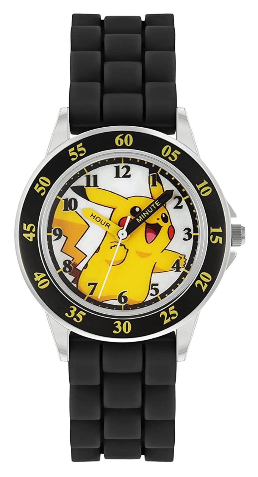 *Time Teacher: Educational Analog Watch – Pokemon*Learn how to tell the time. Children's watch with hour & minute hands to help children learn how to tell time. Time Teachers includes a variety of well know characters and designs from well known Pop culture properties such as Batman, Harry Potter, Pikachu, Frozen, & more!*Features:** Officially licensed easy to read analogue watch.* Stainless Steel Watch, 33 mm metal case with glass dial window* Comfortable adjustable rubber strap with metal buckle* Comes in a licensed box perfect for gifting* 3ATM – Light Water Resistance* Japanese Quartz Movement*Suitable for ages 3 & up*