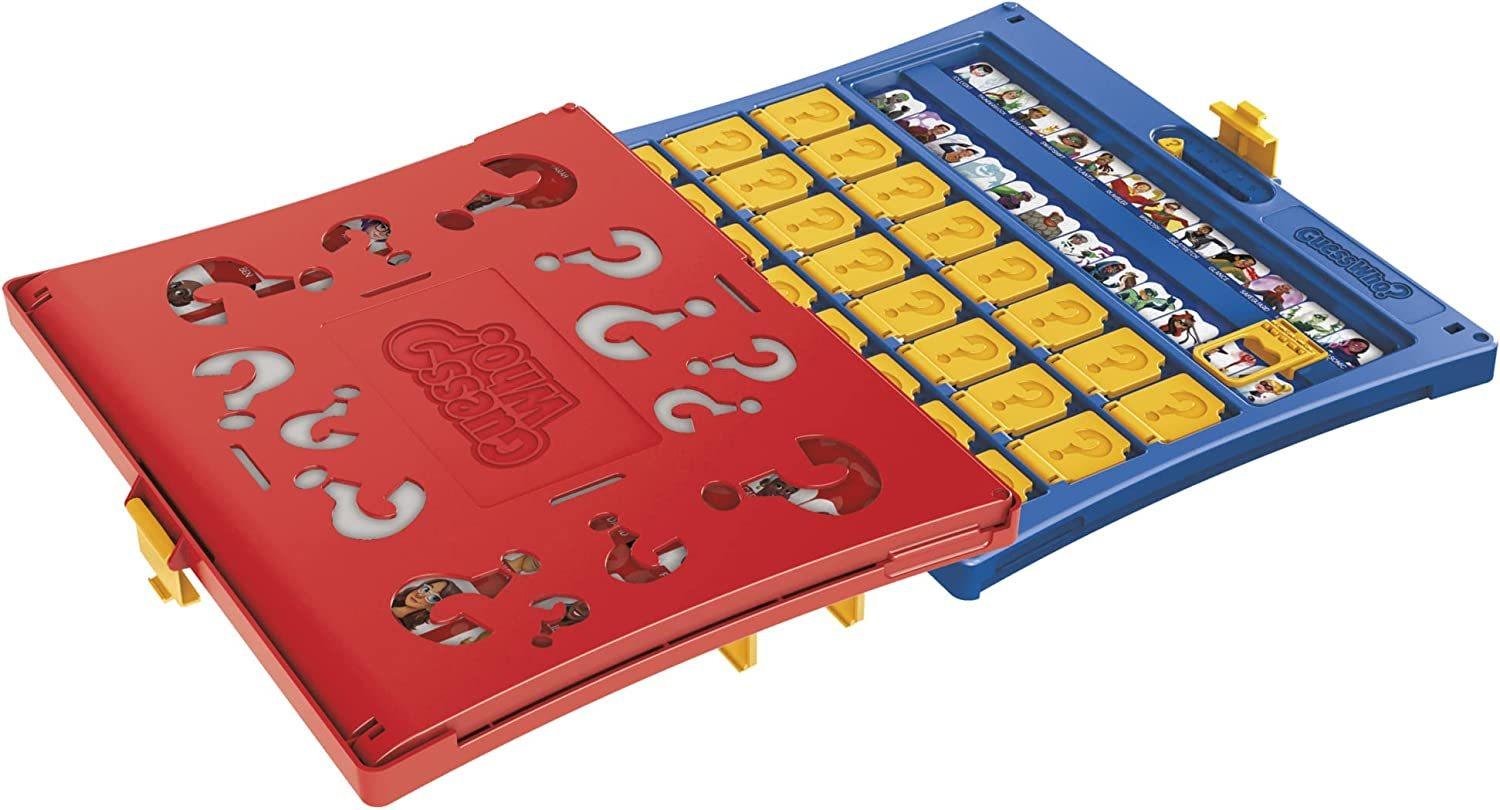 Bring back childhood memories of playing the classic Guess Who? game, and introduce this edition of the original guessing game to your kids and grandkids. With the Guess Who? (2023 Edition) board game, each player chooses a mystery character card and then using yes or no questions, they try to figure out the other player's mystery person. The game features 2 double-sided character sheets including one with superhero characters. The character sheets easily slide in and out of the frame, making the game a breeze to set up. And the convenient fold-up case makes it a great choice for on-the-go play. The Guess Who? 2-player game is a great indoor activity for kids ages 6 and up.• *THE ORIGINAL GUESSING GAME:* Kids can have loads of fun as they use yes or no question to guess each other's mystery character to win the game!• *GUESS PEOPLE OR SUPERHEROES:* This edition of the Guess Who? board game for kids includes 2 double-sided character sheets with classic characters and superhero characters!• *EASY TO LOAD AND SET UP:* With one-motion set up, easy-to-load frame, and convenient fold-up case, the 2-player game is convenient to take on the go!• *CLASSIC GUESS WHO? GAMEPLAY:* If you loved playing the classic Guess Who? game when you were a kid, you will have a great time introducing new generations to this edition of the mystery board game!• *BOARD GAMES MAKE GREAT GIFTS:* Guess Who?, the original guessing game for children, makes a fun birthday gift or holiday gift for kids ages 6 and up!_Includes 2 frames, 2 double-sided character sheets, and instructions._