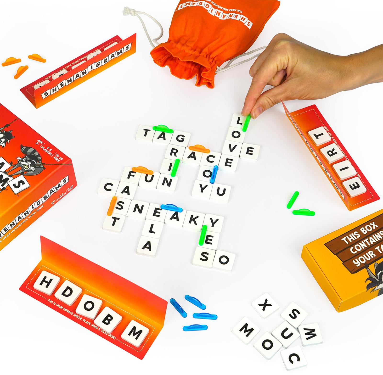 Shenanigrams is a mega mischievous word game that all ages will love!Players battle head-to-head in a nail-biting race to build and steal as many words as possible from their opponents by using stealth, strategy and wordy wickedness.It’s easy to learn, quick to play and the perfect grab-and-go game to keep everyone entertained for hours. You don’t need to like word games to LOVE this one. Kids, teens and adults will be hooked!Let the Shenanigrams commence…EASY TO LEARN, IRRESISTIBLY FUN. It's travel-friendly and the perfect grab-and-go game to keep everyone entertained for hours.SUPER COMPETITIVE, HIGHLY ADDICTIVE. Battle head-to-head in a nail-biting race to build, tag and steal words from your opponents using stealth, strategy and wordy wickedness. Be the first to use all your tags and shout “SHENANIGRAMS!”.KIDS, TEENS & ADULTS WILL BE HOOKED! Fantastic fun for anyone aged 8+. No need to be a Shakespearean wordsmith – this game can be as simple or strategic as you decide to make it. Like great wine, it gets even better with time!AN AWESOME GAME FOR 2–6 PLAYERS. It can be hard to find great games for 2+ players. That’s why Shenanigrams has been designed to be just as fun for 2 players as it is for larger groups!KIND ON THE PLANET. Shenanigrams is 100% carbon neutral, and the creators have strived to make it as environmentally friendly as possible while durable enough to last through years of repeated play.*Features:** 2–6 Players* 15–30mins* Ages 8+