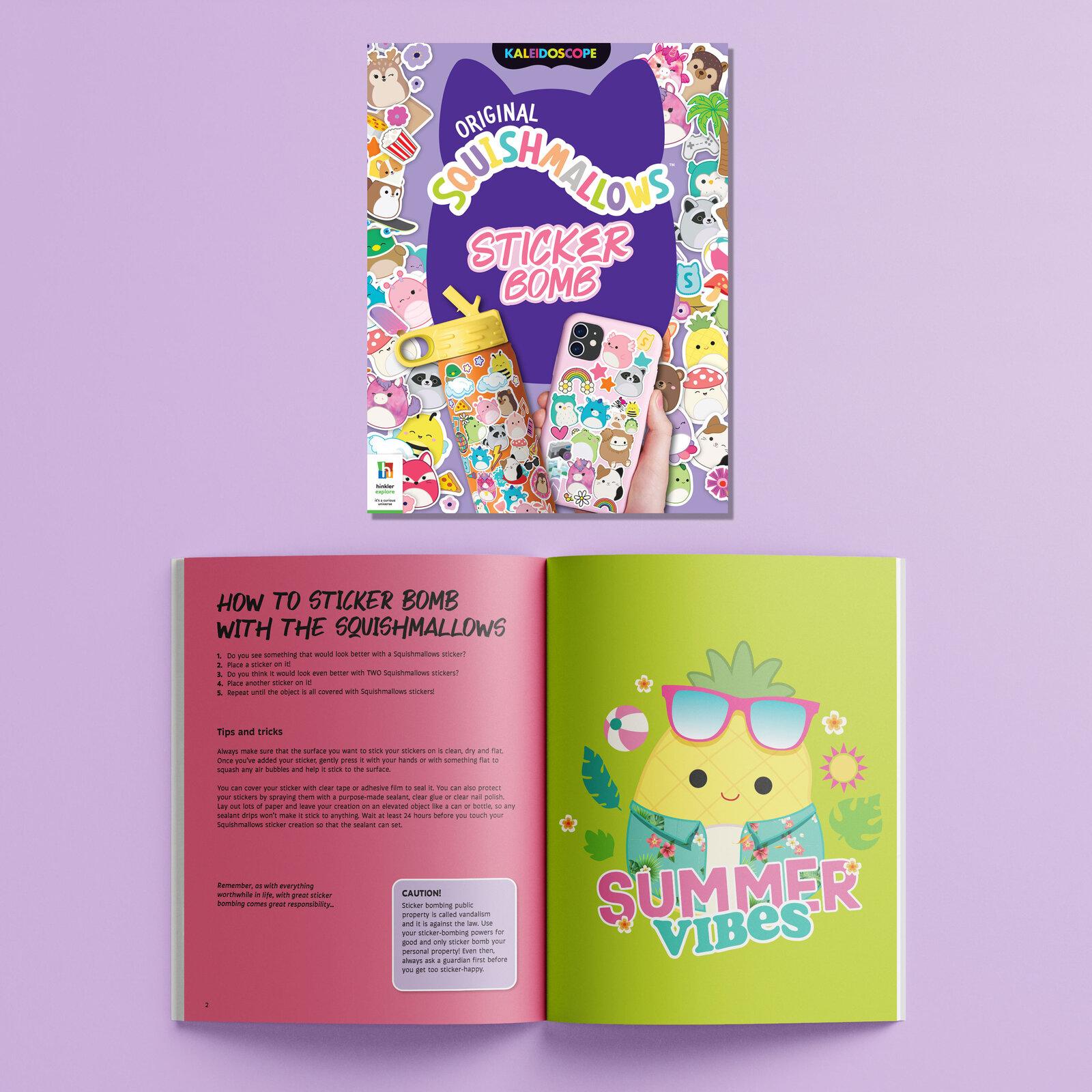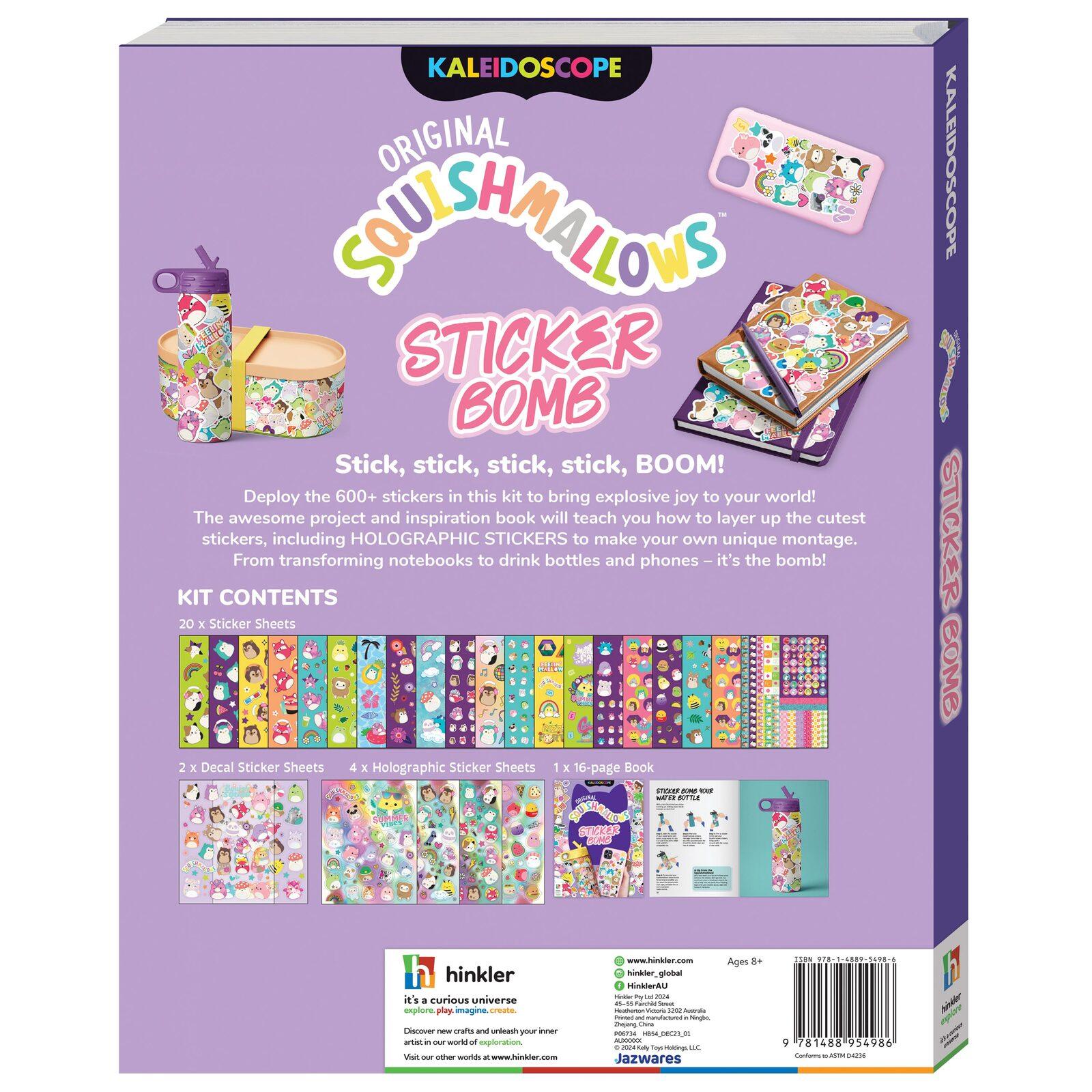 *Kaleidoscope: Sticker Bomb – Squishmallows*Deploy the 600+ stickers in this kit to bring Squishmallows joy to your world! The awesome activity and inspiration book will teach you how to layer your Squishmallows stickers to make everyday items one of a kind. Plus, style things your way with bonus holographic and decal stickers!*Features:** Kit includes: 24 standard sticker sheets, 4 decal sticker sheets, 2 holographic sticker sheets, 16-page activity and project book.* Comes in a handy folder format making it the perfect travel companion.* Hinkler Stickers*Suitable for Ages 8+*