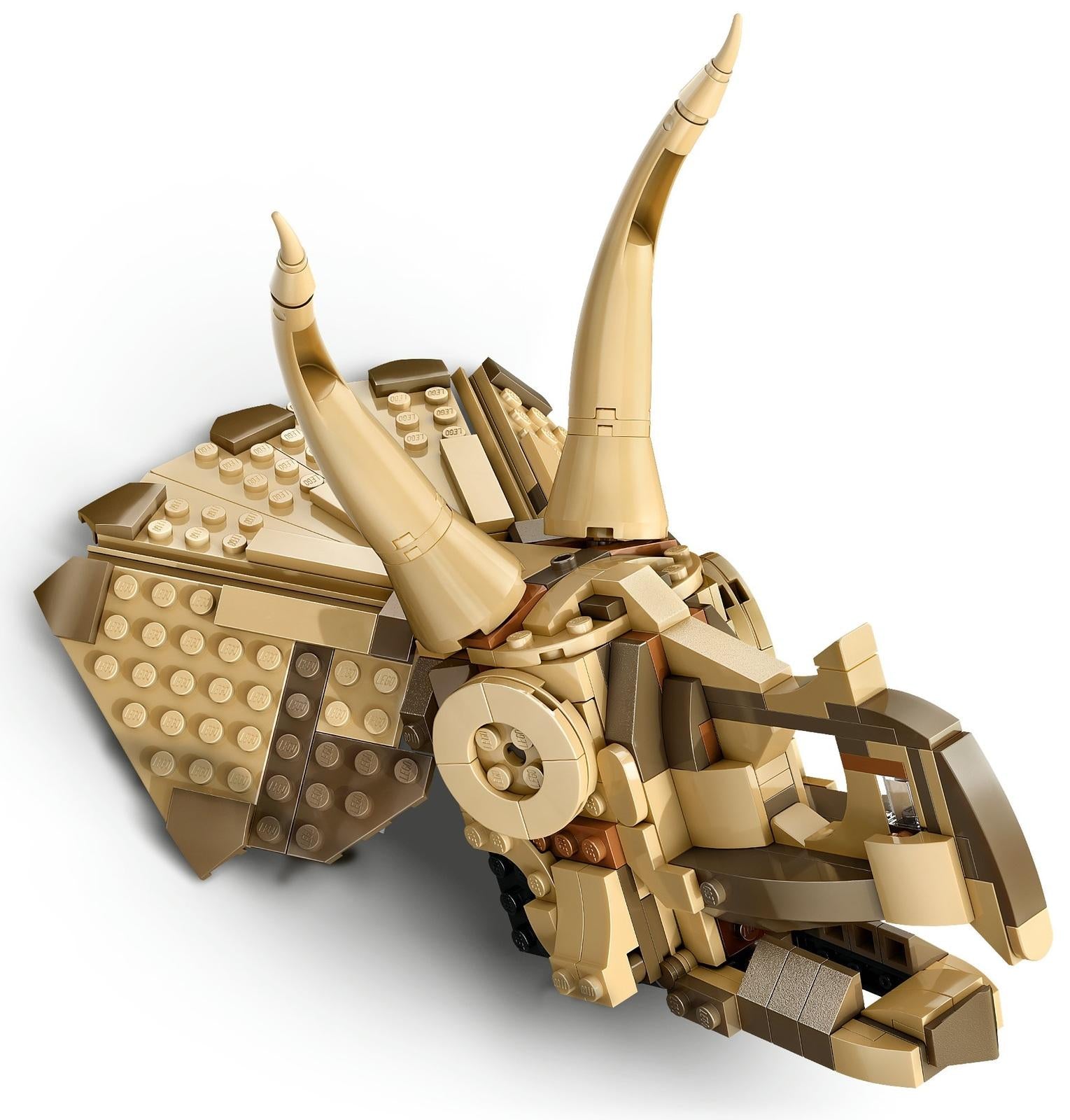 *Collectible Triceratops fossil as a gift for kids to display*Young palaeontologists aged 9 and over can enjoy imaginative Jurassic World play by collecting dinosaur fossils with this Dinosaur Fossils: Triceratops Skull (76969) LEGO Jurassic World building kit. This model playset in the Dinosaur Fossils display series features a Triceratops skull with an opening jaw, a stand with a rock base, a dig site plate with mini-fossils and excavating tools, a LEGO minifigure, an information plaque and an ‘amber’ piece with an encased mosquito.The LEGO Builder app will guide dinosaur fans on an intuitive building adventure, letting them zoom in and rotate models in 3D, save sets and track progress. As they build, maybe they will feel the same thrills real palaeontologists feel during a discovery! Find other LEGO Jurassic World sets (sold separately) to inspire kids’ imaginative play, with dinosaur toys to recreate classic scenes, or dinosaur models to build and show off their passion. The sets make fun gifts for kids, dinosaur-lovers and fans of all ages.*Features:** This displayable building kit gives dinosaur model fans a more challenging build* A Triceratops skull, minifigure and a dig site plate with mini-fossils and tools* Skull can be posed on the stand, or with the LEGO minifigure and tools* The Jurassic World set makes a fun dinosaur gift for kids’ birthdays or Christmas* Step into an interactive way of building with the LEGO Builder app* LEGO Jurassic World sets help kids explore their passion for dinosaurs* 468-piece set has a Triceratops skull on a base that’s over 22 cm (8.5 in.) high*Specifics:**Item*: 76969*Pieces*: 468*Ages*: 9+