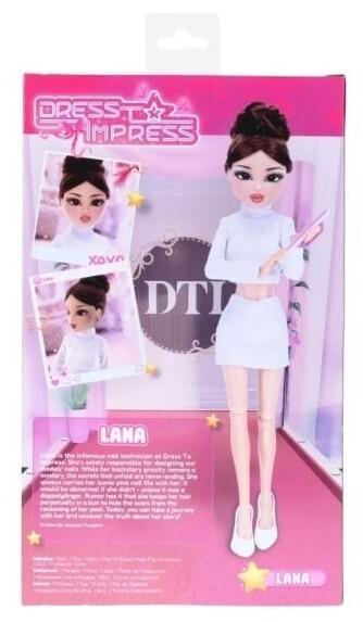 Step into the spotlight with the Dress To Impress Fashion Dolls Assortment! Collect this iconic Lana Fashion Doll from the hit game, Dress To Impress!Lana—the mysterious nail tech and fan-favourite fashionista—comes runway-ready, styled in her iconic all-white outfit, glam makeup, and signature pink nail file accessory. Her outfit features premium pieces for a fabulous look and feel!This 11.5-inch doll is fully articulated, perfect for slaying in fashion-forward poses. Plus, the doll comes with a collector card featuring exclusive game art and a redeemable DLC code that unlocks in-game digital rewards for Dress To Impress, letting you level up your style on and off the screen!*Features:** Inspired by the Competition: Styled after the bold, trendy themes seen in the hit game Dress To Impress!* Signature Style, Straight from the Game: Dressed in fierce, game-accurate pieces—crafted with premium materials for a fabulous look and feel.* Strike a Pose: Fully articulated 11.5-inch doll for maximum pose range—perfect for fierce runway moments and fashion-forward fun.* Bonus In-Game Content: Includes a DLC code to unlock digital rewards in the game.* Officially Licensed: Genuine Dress To Impress merchandise, by PhatMojo.*Suitable for Ages 6+*