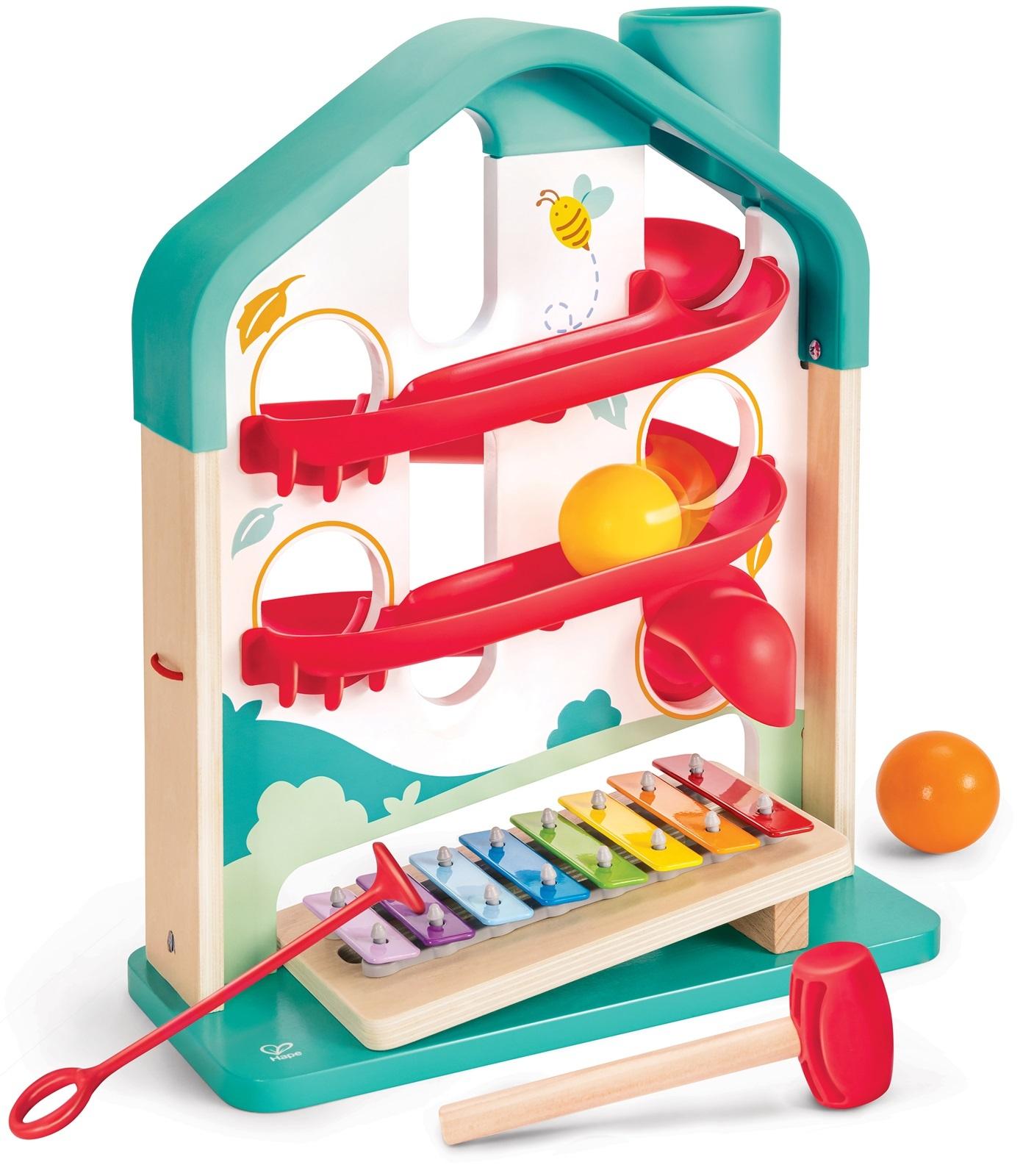 *_Hape: Melody Mansion Ball Run_*Experience the joy of music and rolling fun with our House-shaped Ball Rolling Game. Navigate the colourful maze, or take out the xylophone board for individual melodic play. Pound the ball from the house chimney, and watch it roll along the tracks. Once it falls onto the rainbow-xylophone you`ll hear crisp and sweet sounds.*Features:** LEARNING CAUSE AND EFFECT: Children learn about cause and effect relationships as they observe how their actions like rolling the balls or playing the xylophone, produce certain outcomes.* HELPING BRAINS GROW: Exploring the ball track and playing the xylophone promotes cognitive growth, problem-solving, and critical thinking.* DISCOVERING COLOURS: With its vibrant rainbow palette, the xylophone offers an engaging way to enhance children`s colour recognition skills.* DEVELOPS FINE MOTOR SKILLS: Manipulating the balls on the rolling track and striking the xylophone keys improves children`s hand-eye coordination and fine motor skills.* 2-in-1 PLAY MODE: This toy can be played as a ball run or you can take the xylophone out and simply play the instrument.* EXPLORE MUSICAL FUN: The xylophone can play different sounds and melodies, making it the ideal introduction to the exciting world of music.