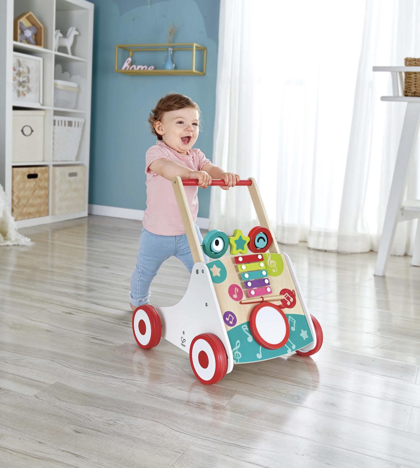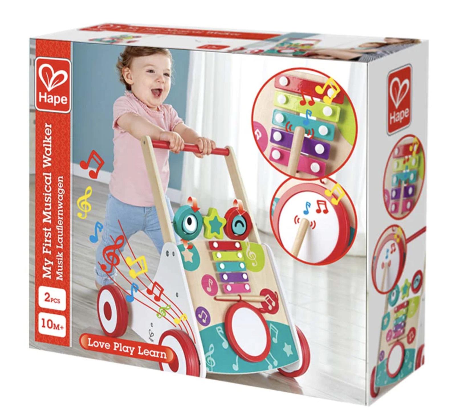 Help your little ones take their first steps in style with this wonderful musical walker. See their faces light up as they start to walk and hear pretty music playing as they go! With adjustable speeds, the walker also features a drum, xylophone and three spinning blocks for additional mucisal play. The walker will play fun music as you push it around the living room. You can also play the additional instruments attached to create your own music!*Contents:** Product Dimensions: 405 × 415 × 500mm* Packaging Dimensions: 410 × 360 × 120mm*_Suitable for ages 12+ months_*
