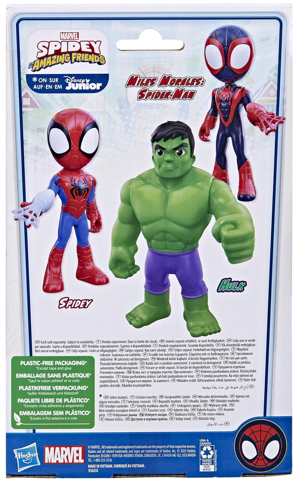 *Web-out with this 9-inch-tall Spidey and His Amazing Friends Supersized Hulk Action Figure!*It’s Spidey time! Spidey and His Amazing Friends Supersized Hulk action figure is made for big imaginations. At 9 inches tall, this large-scale, poseable superhero action figure is big, friendly, and ready to play! Kids can move the figure’s head and arms into fun action poses to recreate favourite scenes from the preschool Marvel animated show on Disney Junior. Look for other Supersized Spidey and Friends figures to complete your collection for more Spidey fun! (Each sold separately. Subject to availability.)*Features:** Hulk figure’s head and arms move, so preschoolers can move them into dynamic action poses that recreate the excitement of the TV show* Kids can recreate favourite scenes from the preschool animated show on Disney Junior* This preschool Marvel action figure makes an awesome holiday or birthday gift for girls and boys ages 3 and up who love superhero toys* For even more Spidey Team fun, look for Supersized Spidey, Supersized Ghost-Spider, and Supersized Miles Morales: Spider-Man action figures. (Each sold separately. Subject to availability.)*For Ages 3 & up*