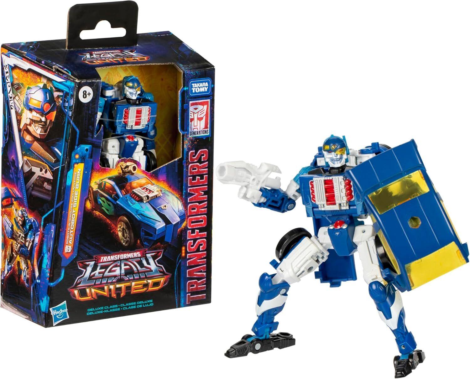*Unite your favorite characters from across the world of Transformers robots into your collection with the Transformers Legacy United Deluxe Class Robots in Disguise 2001 Universe Autobot Side Burn action figure!*This 5.5-inch Robots in Disguise 2001 Universe Autobot Side Burn action figure converts between robot and sports car modes in 18 steps. Gear up for battle with the included blaster accessory. The Robots in Disguise 2001 Autobot Side Burn figure is inspired by the character from the Transformers: Robots in Disguise animated series and features articulated head, arms, and legs for awesome action poses.Celebrate the last 40 years of Transformers history with Transformers Legacy action figures. Transformers Legacy opens the portal to a whole new universe of – More Than Meets the Eye – bringing together every Transformers generation like you’ve never seen before. Collect and combine different characters to create your ideal Legacy lineup.*Features:** This 5.5-inch (14 cm) toy features deco and detail inspiration from the animated series* Transformers action figure converts from robot toy to sports car toy in 18 steps* The Transformers figure comes with a blaster accessory.* Attach the rear bumper piece to the blaster accessory to form an axe.* Vehicle roof can be removed and attached as a shield* Burn action figure toy makes a great collectible figure gift for any Transformers fan* Transformers figures feature articulated heads, arms, and legs for action poses* Transformers Legacy United honors 40 years of Transformers animated history!* Collect other Legacy: United figures to unite your collection (each sold separately)*Suitable for ages 8 & up*