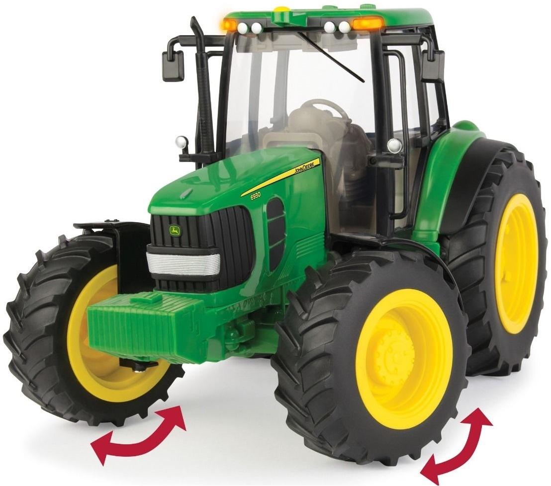 *_John Deere: 1:16 Big Farm with Wagon_*Everything your future farmer needs to haul their cargo! Awesome lights and sounds with opening cab roof for access through the cab roof to the steering wheel that moves the front axles.The 1:16 Big Farm 6930 John Deere Tractor with Dump Wagon is an incredible value.*Features:** The Tractor features easy activated lights and sounds, opening cab roof for easy access to the steering wheel to utilize the movable front axles.* The dump wagon hitches easily to the tractor and features a tilting box and lifting tailgate.* Everything the little farmer needs to haul their cargo!* Ages 3 yrs+