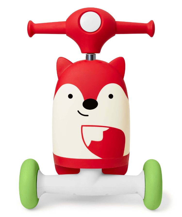 *Skip Hop: Zoo Ride On 3 in 1 Scooter – Fox*Designed to grow with your little one for three stages of fun, Skip Hop’s cute and colorful Ride-On Toy offers an entertaining way to encourage motor skills development, balance and coordination at playtime.Stage one, designed for early walkers, motivates little ones to push and pull in wagon mode—a great spot for favorite toys, too. At stage two, the wagon’s storage tub converts to a seat for ride-on mode. Ready for stage three? Just remove the seat, pull up the adjustable handle for your toddler, hop on the scooter and take it for a spin! They’ll love pressing the button at the front for a headlight, melodies, a beep sound and more fun sound effects as they whizz along.*Features:** Three ways to play: walk, ride and scoot* Grow-with-me features encourage motor skills development, balance and coordination* Stage 1: Walker/wagon mode captivates early walkers when learning to walk* Stage 2: Wagon converts to seat for ride-on mode and is great for toddlers* Stage 3: As toddlers grow, easily converts from a ride-on to a scooter* Adjustable handle for a comfortable height when standing* Press button for headlight, melodies, and fun sound effects* Requires 3 AAA batteries (not included)* Dimensions: 57.7 × 34 × 52cm* Weight: 20 kg*Suitable for ages 1 & up*