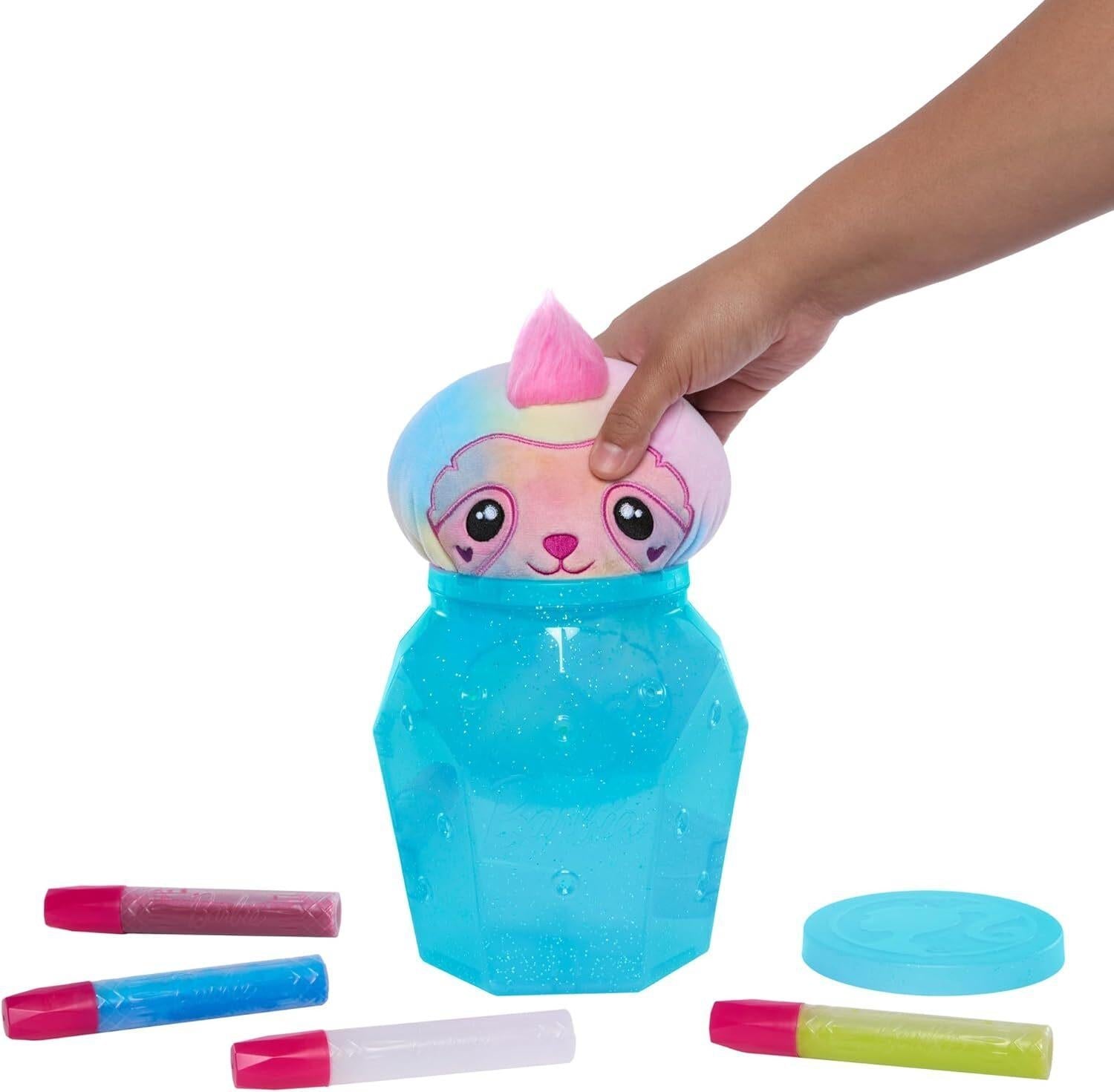 *Barbie: Tye Dye Plush – Blue (Blind Box)*Kids can customize their own plush with the Barbie tie-dye reveal assortment! Each kit contains three color pods and a mystery Barbie plush within a special chamber that is revealed with four simple steps: rinse with water, squeeze color pods into the chamber holes, drain the extra ink through the drain hole, then remove and reveal the plush.The mess-free process produces a cool tie-dye pattern with a heart-shaped Barbie logo. The squishy animal is perfect for cuddling. And young stylists can wash it and repeat all over again! Fun possibilities include a unicorn, sloth and cat.*Features:** Unbox Barbie Tie-Dye Reveal plush to discover an adorable pet and repeatable DIY tie-dye fun!* Each jar hides a 7-inch soft, plushy animal inside – a unicorn, cat or sloth. Which will you reveal?* Kids discover the answer with 4 easy steps – start with the 3 bottles filled with washable ink and 1 empty bottle that gets filled with water.* Use the water-filled bottle to moisten the plush inside through the holes in the container; repeat the process with the ink-filled bottles to create a colorful pattern!* When done designing, remove the plush from the container using the loop on its head and reveal its look – so cute!* Place it on the jar, using its lid, where it can sit to dry and reveal another adorable surprise – a heart tattoo!* Kids can display their unique creations, then wash them clean and start again to play with colors and explore expression!* The soft, cuddly plush are also dreamy pals for snuggles or cuddles at home or on the road!*Suitable for Ages 3+*_Please Note: This is a Blind Box, contents randomized, as so we cannot accept returns_