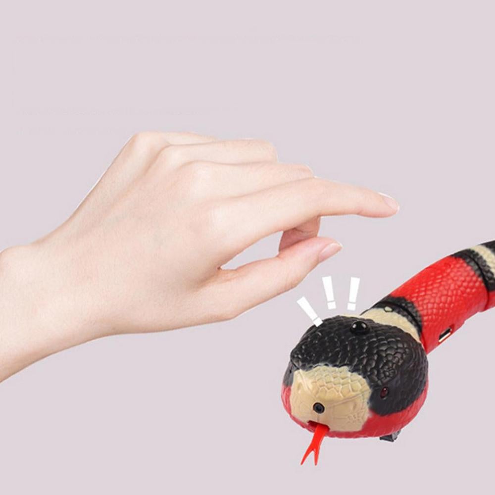 *This smart snake toy is made of non-toxic, safe and environmentally friendly high-quality plastic, which does not hurt people and can be used with confidence.*The pet toys are made of safe and durable high-quality ABS material, the surface of the snake body is highly simulated, smooth and burr-free, we recommend using it on smooth groundThe induction snake toy has a built-in infrared sensor, which can automatically sense obstacles and escape. Turn on the switch, it will go to sleep after 2 minutes of automatic operation, you need to tap to wake it up to restartThe snake toy has an S-shaped crawl. When encountering obstacles, the eyes flash and automatically turn around, and the tail swings quickly, making the action very realistic. This electric snake cat toy features 3D textures and vibrant colors. The segmented body makes for an excellent sliding action and looks very realistic, perfect for kids and pets to play with.*Features:** The time to fully charge is about 40 minutes.* The snake toy adopts USB charging design, built-in rechargeable lithium battery* Note: Adaptor not included, and the included charging cable does not fit the fast charger adapter.*Specifics:** *Color* – Red* *Material* – ABS, electronic components* *Size* – 39 × 4 cm* *Weight* – 120 grams* *Charging time* – About 40min* *Functions* – Automatic and flexible obstacle avoidance