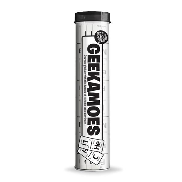 Release your inner geek with GEEKAMOES dominoes featuring elements from the periodic table we all learnt at school.GEEKAMOES features 28 reimagined dominoes and just like normal dominoes you can still play all your favourite dominoes games while learning your elements!* Symbols are 100% correct down to the atomic weight.* Great to gift or to play with.* Learn your periodic tables a you play.* Match the letter, the element name or the atomic weight."